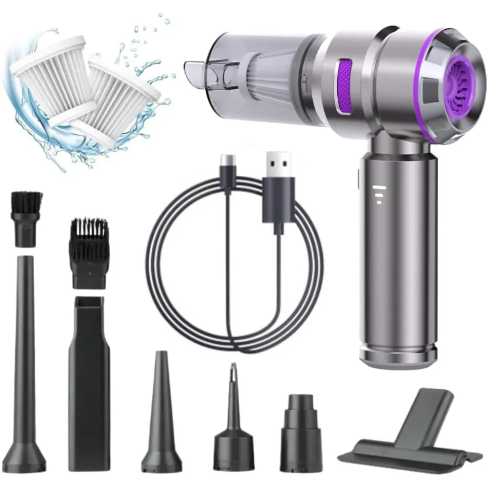 Портативный беспроводной пылесос MINI HL-121 — мощный и компактный 2в1 прибор для автомобиля, объединяющий функции всасывания и выдувания. Универсальный автопылесос эффективно поддерживает чистоту в салоне, убирая пыль, песок, крошки и шерсть.