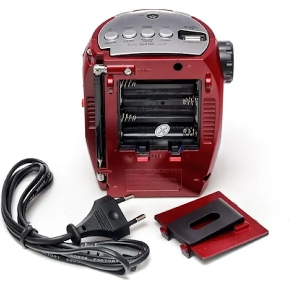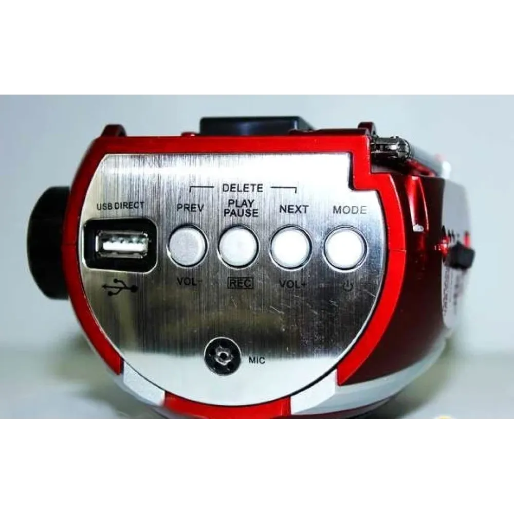 Радио Golon RX-678MIC FM радиоприемник с фонарем. Модель воспроизводит аудиофайлы форматов MP3, WMA с USB флешек и SD карт памяти. В комплекте с Golon RX-678MIC есть шнур для зарядки от сети 220 В и ремешок, также радиоприемник оборудован функцией "караоке".
