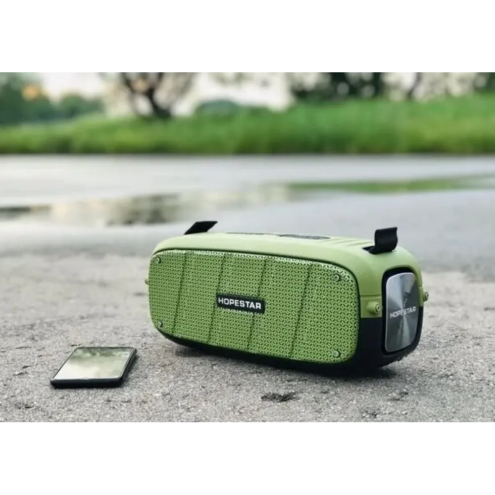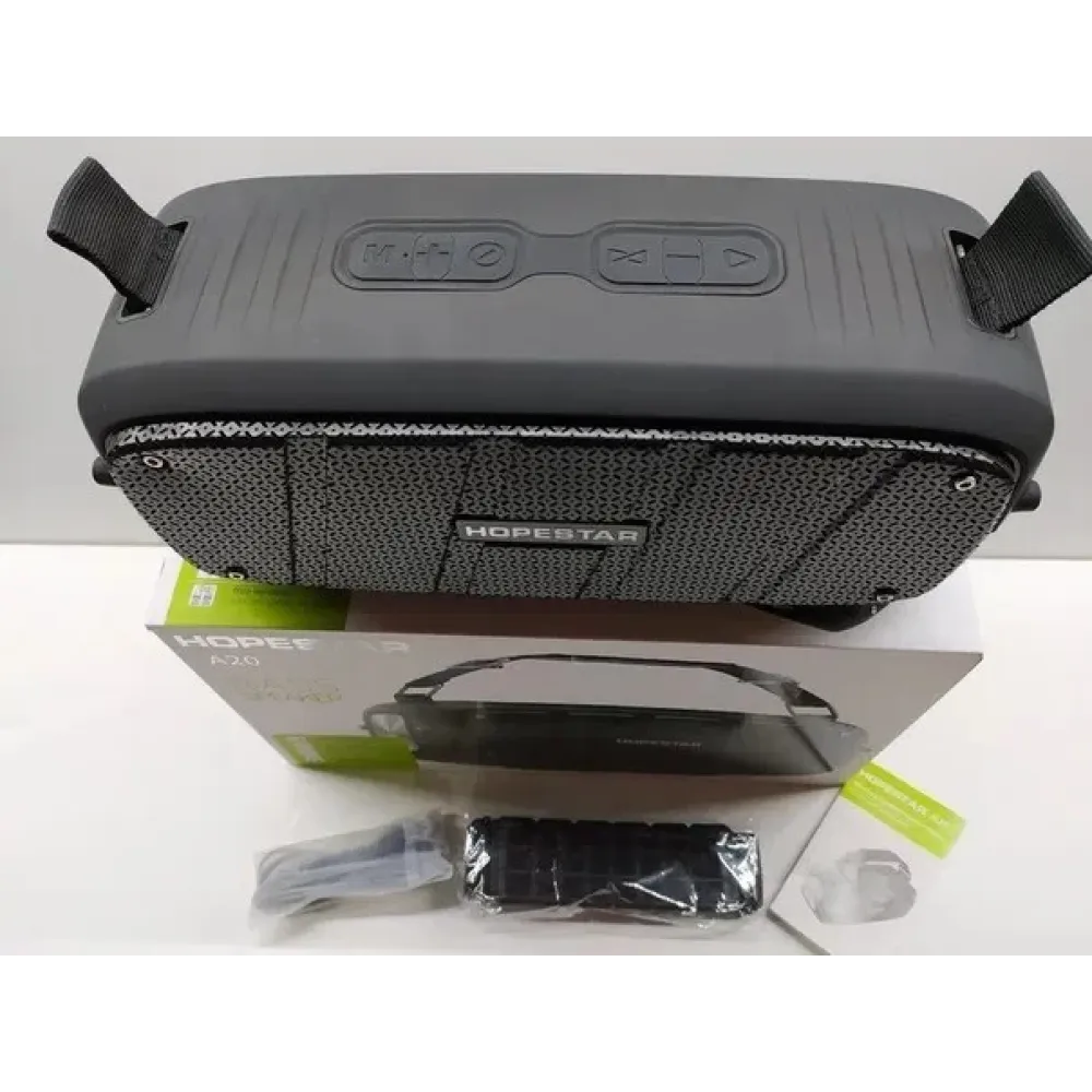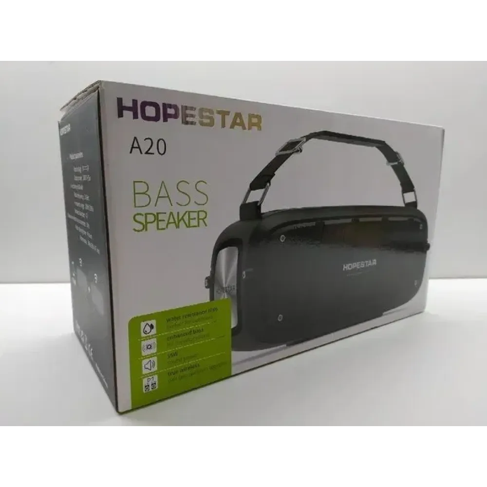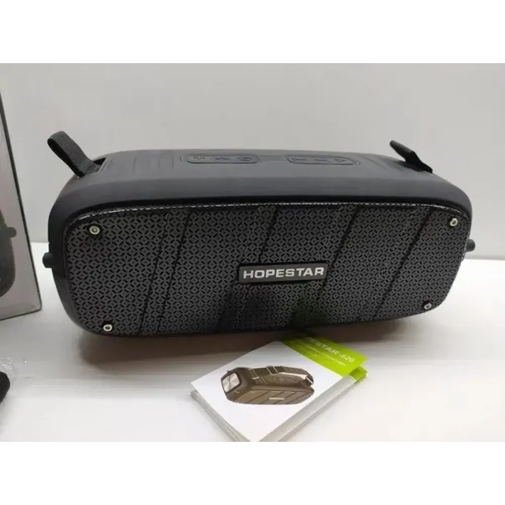 Оригинальная портативная стерео колонка Hopestar A20 - это яркая новинка 2020 от известного бренда беспроводной акустики и мобильных колонок. Новая модель Hopestar A20 BASS Speaker - на сегодня самая громкая, качественная и басовитая Bluetooth колонка в линейке производителя. Колонка обладает великолепным, мощным и насыщенным звуком выдавая суммарно 55W. В отличии от своих предшественников, переносных колонок HOPESTAR A6, H31, новая A20 выпущена в совершенно новом, оригинальном дизайне, влагозащищенном по степени IPX6 корпусе, со стильной металлической решеткой на лицевой части колонки. Герметичная и ударопрочная колонка со съемным ремнем для переноски станет лучшим вариантом для использования на природе. A20 не боится дождя и пыли, все контактные разъемы бумбокса надежно и герметично защищены резиновой заглушкой, благодаря чему, данная модель идеально подходит для использования под открытым небом.