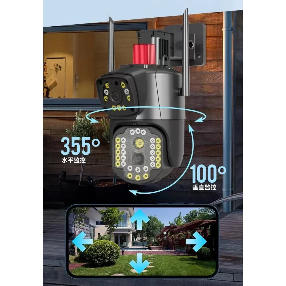 Беспроводная наружная IP камера V380 WI FI · Двойная уличная камера видеонаблюдения 2 объектива 4MP+4MP с удаленным доступом