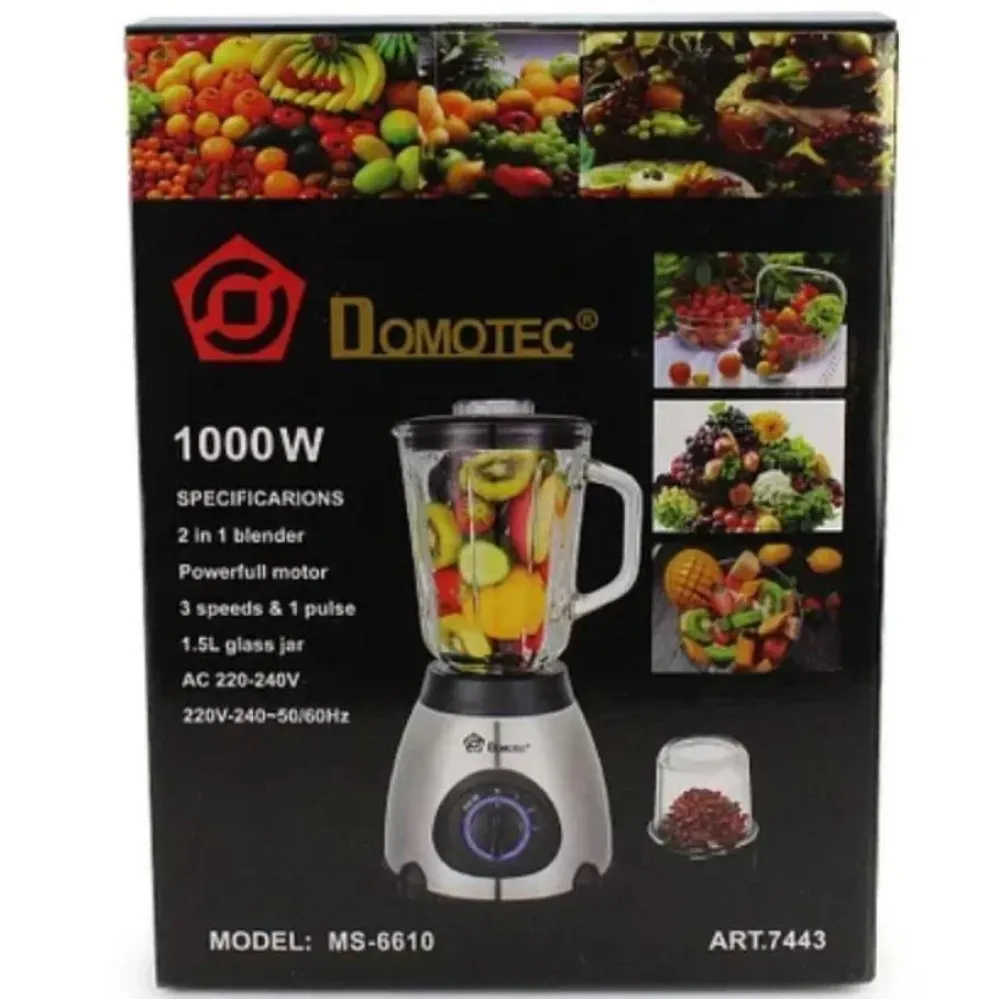 Блендер Domotec MS-6610 – отличный стационарный блендер, который измельчит большие объемы продуктов за несколько мгновений. Его большой кувшин из стекла вмещает 1.5 л. Внутри кувшина масса циркулирует в горизонтальном и вертикальном направлениях, что гарантирует тщательное измельчение.