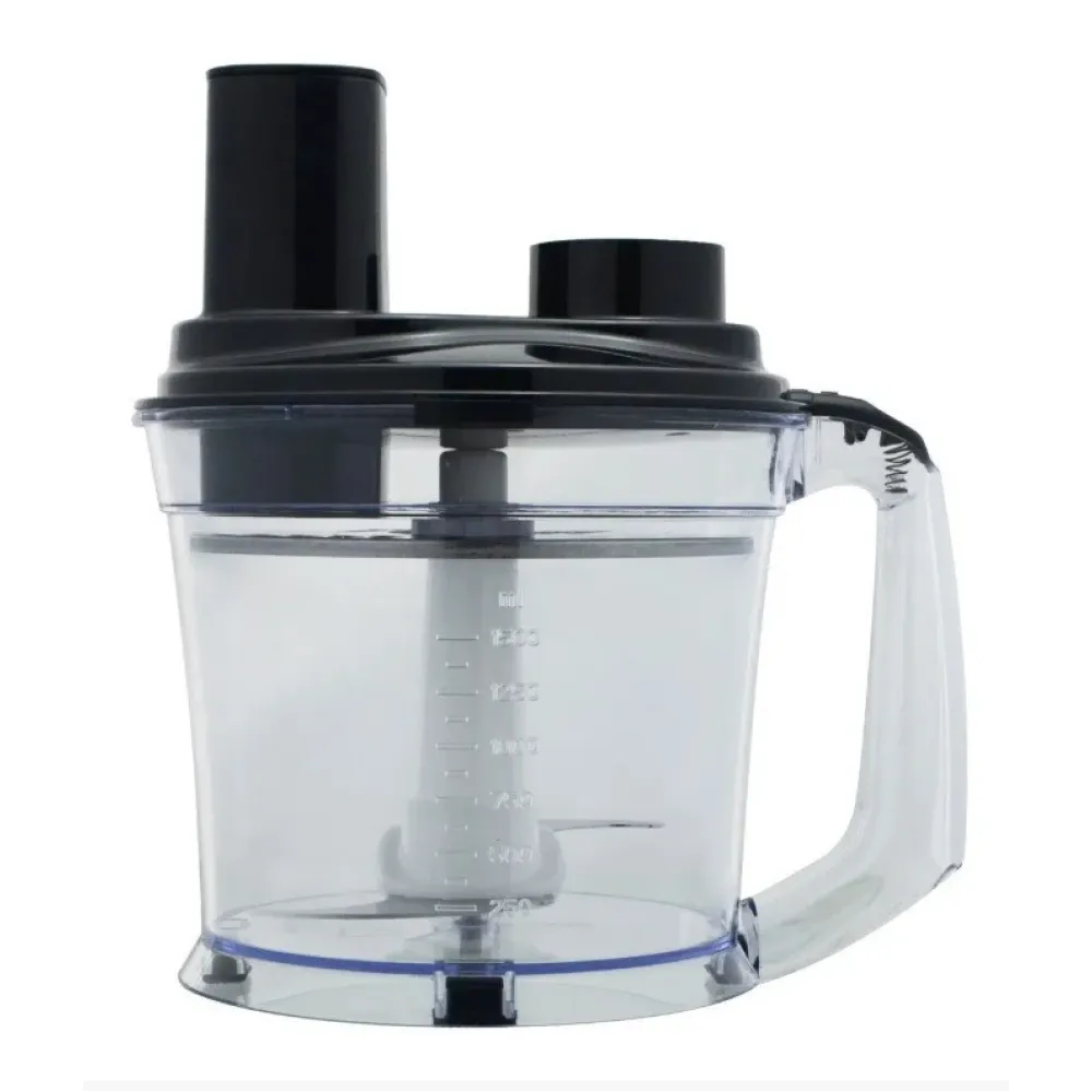В большой чаше измельчителе на 1.7 литра с диском для терки и шинковки отлично получится фарш, паштет, тесто для блинчиков и многое другое. Для приготовления смузи и коктейлей подойдет стакан емкостью 600 мл.