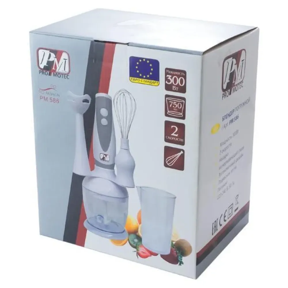 - Для удобства использования погружной измельчитель Promotec PM-586 имеет 2 скорости.
