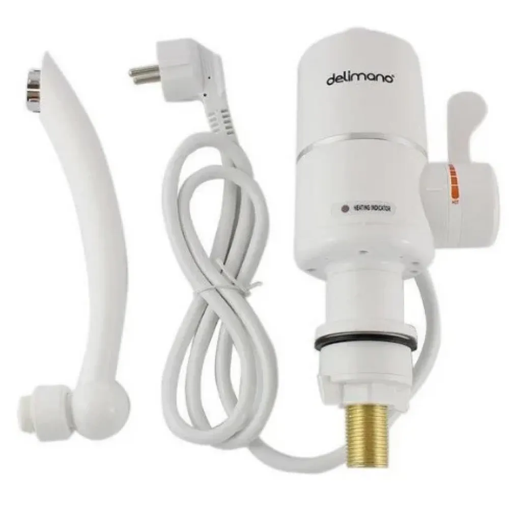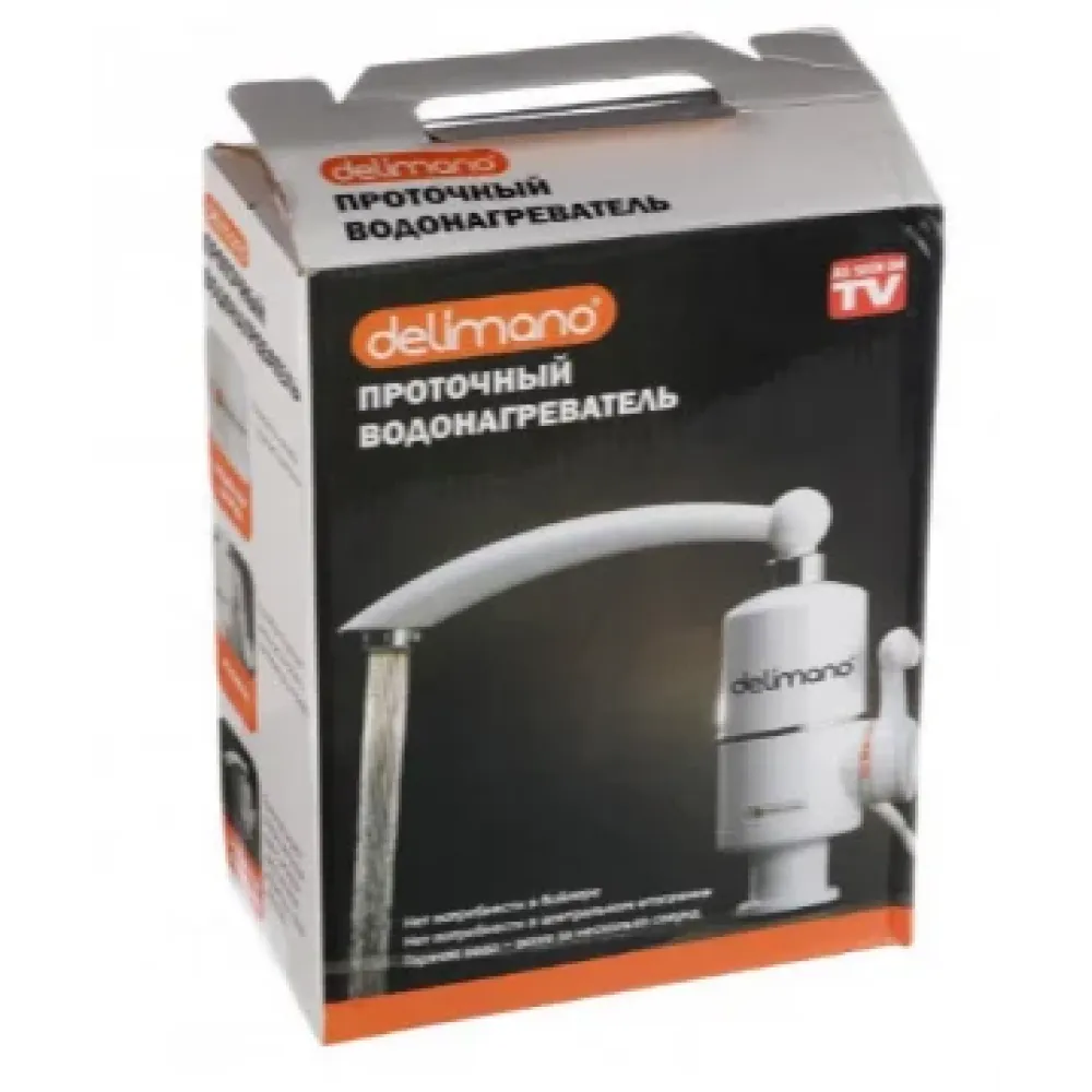 Бойлер - кран Delimano MW-27 ∙ Проточный водонагреватель ∙ Нижнее подключение - электрический проточный водонагреватель мощностью 3 кВт, которой достаточно для нагрева воды до 60 градусов. Вода становится теплой буквально за секунды. Работает кран от обычной сети и помогает избежать сбоев в поставках горячей воды или наладить водоснабжение там, где есть только холодная вода. Сфера применения очень широка.
