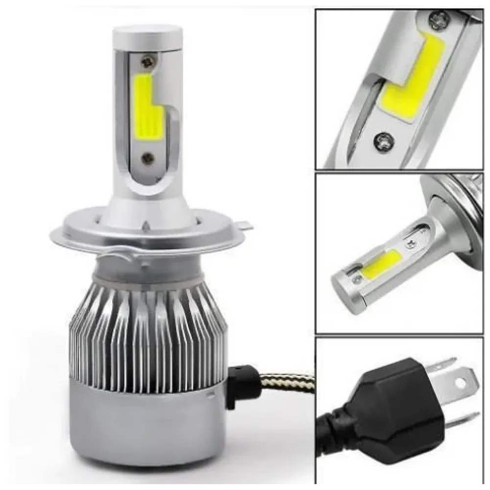 Светодиодная лампа C6 с H4 цоколем может работать в двух режимах: ближнем и дальнем. На лампе расположено по 2 светодиода по бокам. Светодиоды ближнего света расположены с двух сторон лампы и прикрыты "шторками", формируют четкую границу ближнего света, не ослепляя встречных водителей.