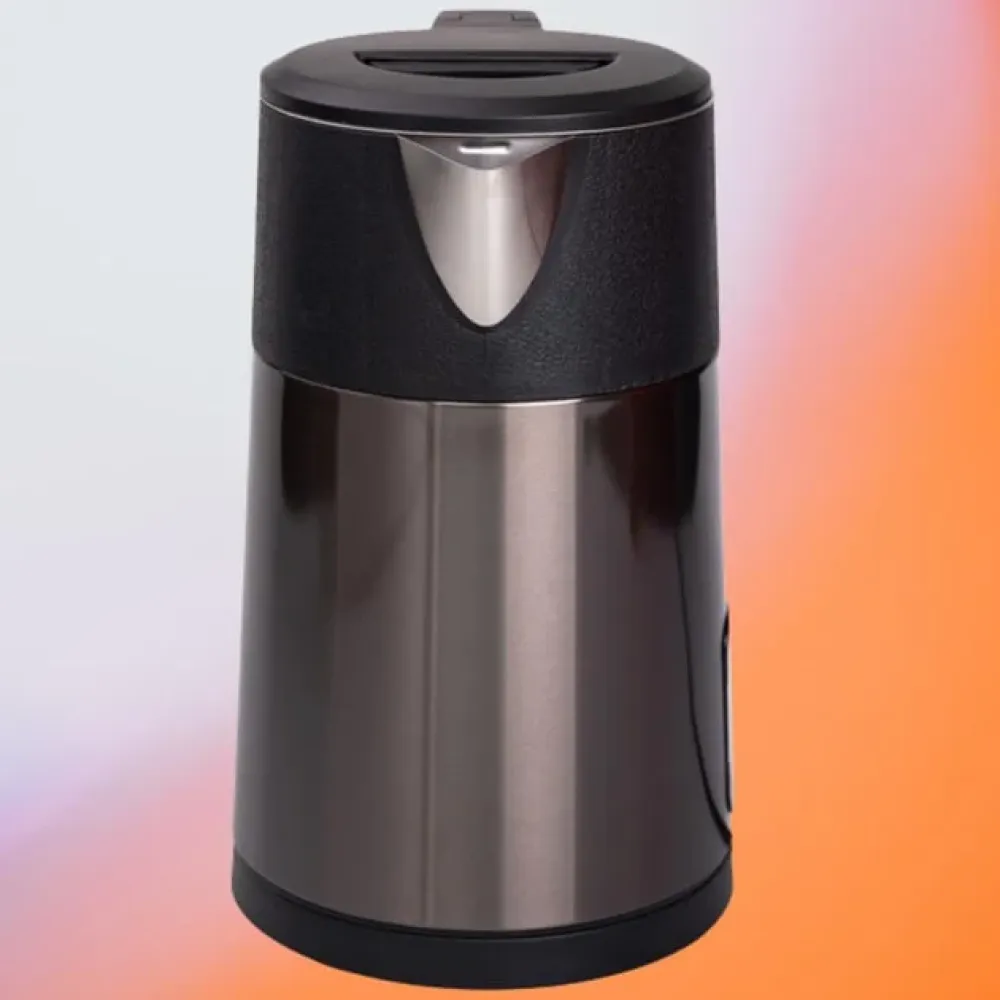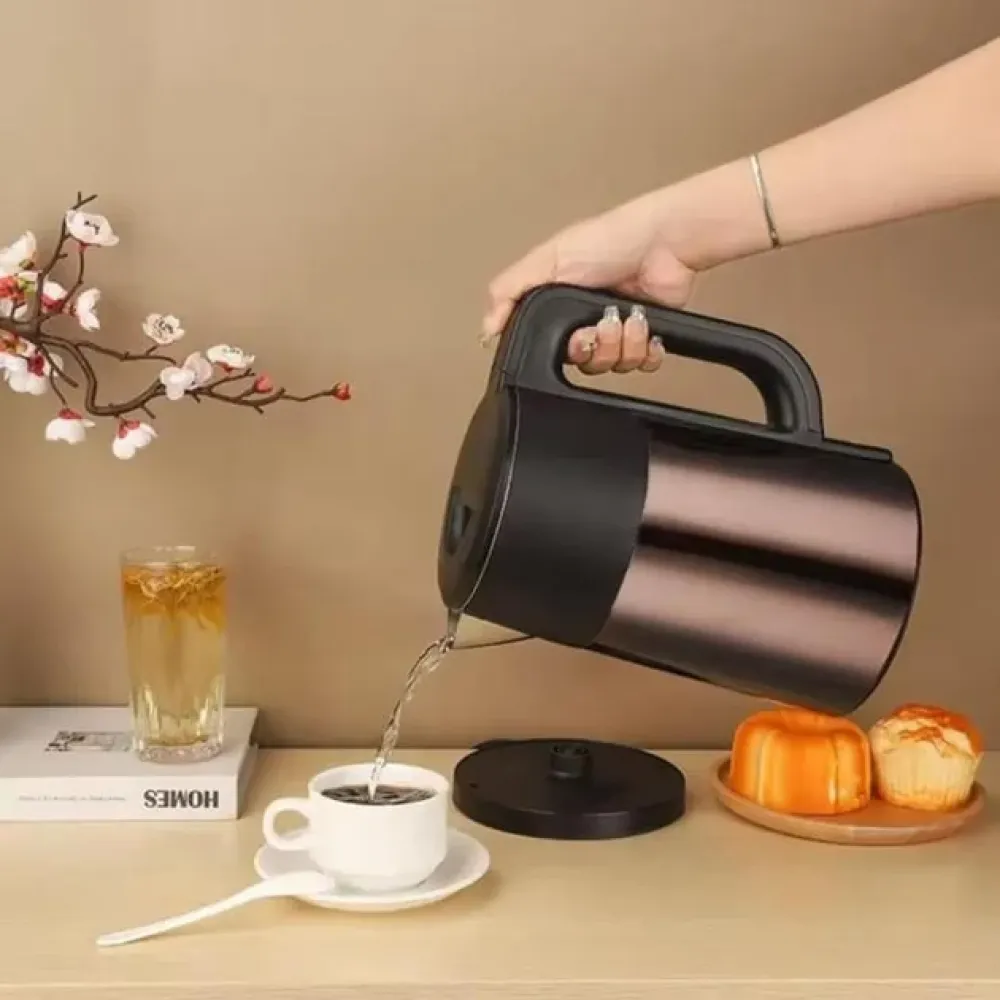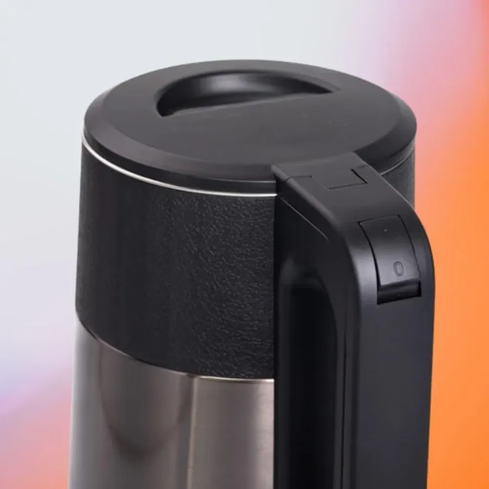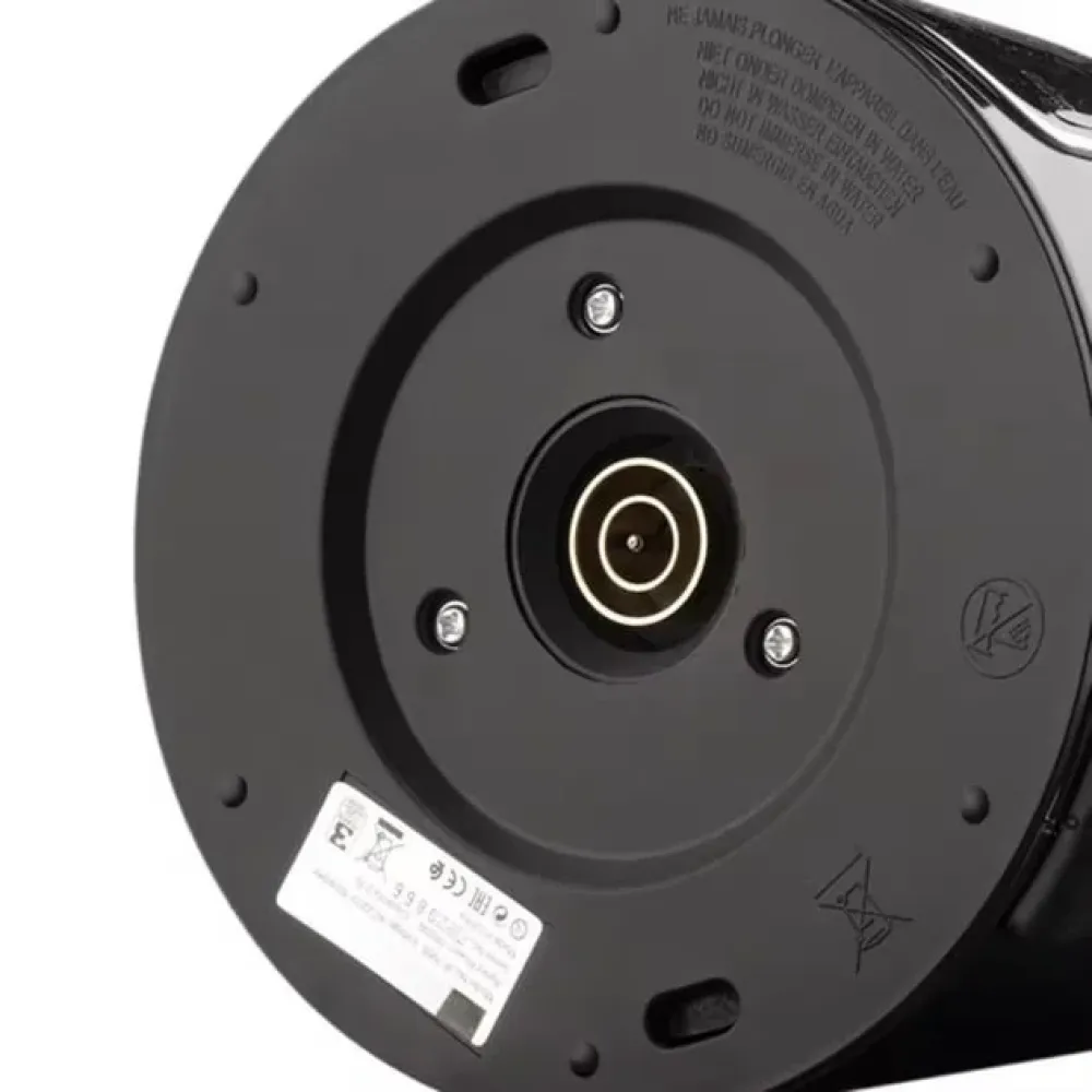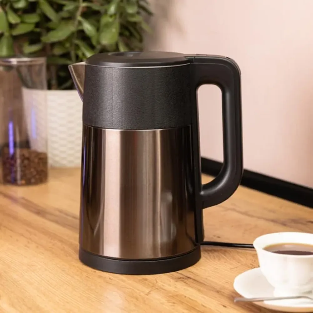 Корпус выполнен из нержавеющей стали, что гарантирует долговечность и стильный внешний вид. Скрытый нагревательный элемент облегчает уход и препятствует образованию накипи. Для безопасности предусмотрены автоматическое отключение при закипании и защита от перегрева.