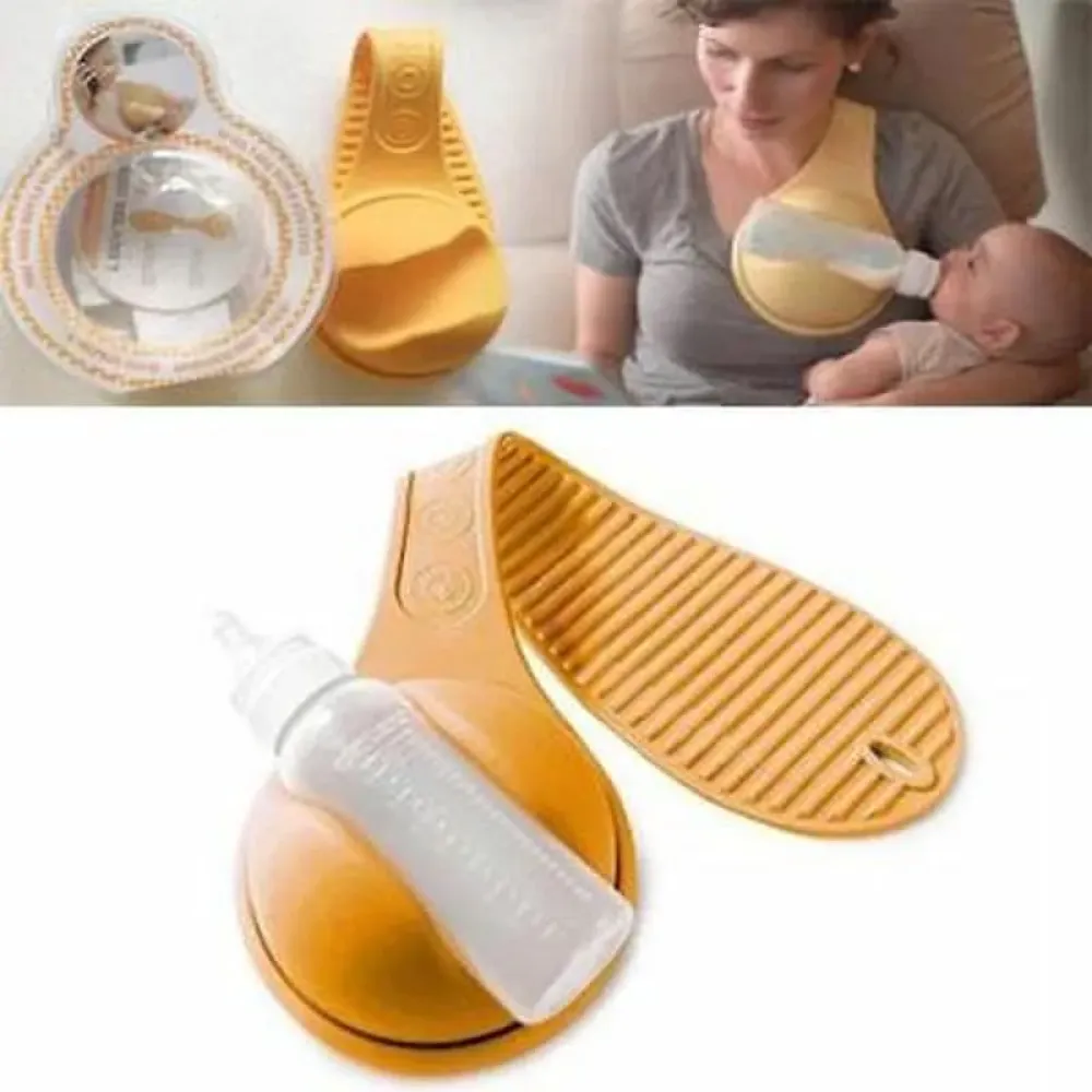 С таким приспособлением бутылочка находится на груди в идеальном положении для кормления