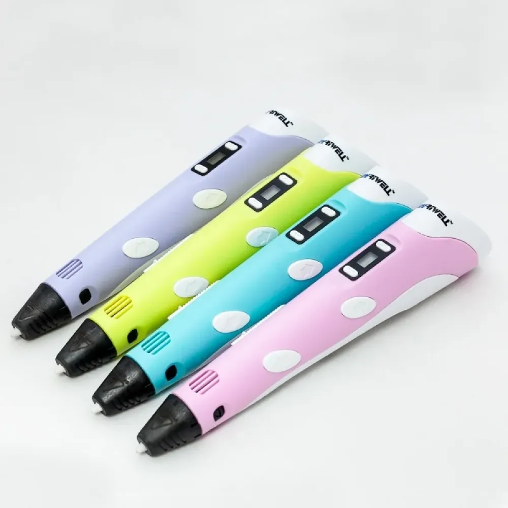| Ручка для создания объемных моделей myriwell 3d pen-3 с подставкой и трафаретами. Ручка 3-го поколения, обновлённая версия с компактным LCD-дисплеем и возможностью регулировки скорости подачи пластика; сопло выполнено по новой технологии. Ручка может рисовать в воздухе! Совместимость с пластиком ABS и PLA. Для работы нужен пластик диаметром 1,75 мм. Работа механических узлов стала более плавной, а скорость загрузки пластика по прежнему осталась высокой. На дисплее отображается температура, при этом регулировку можно делать с точностью до одного градуса.