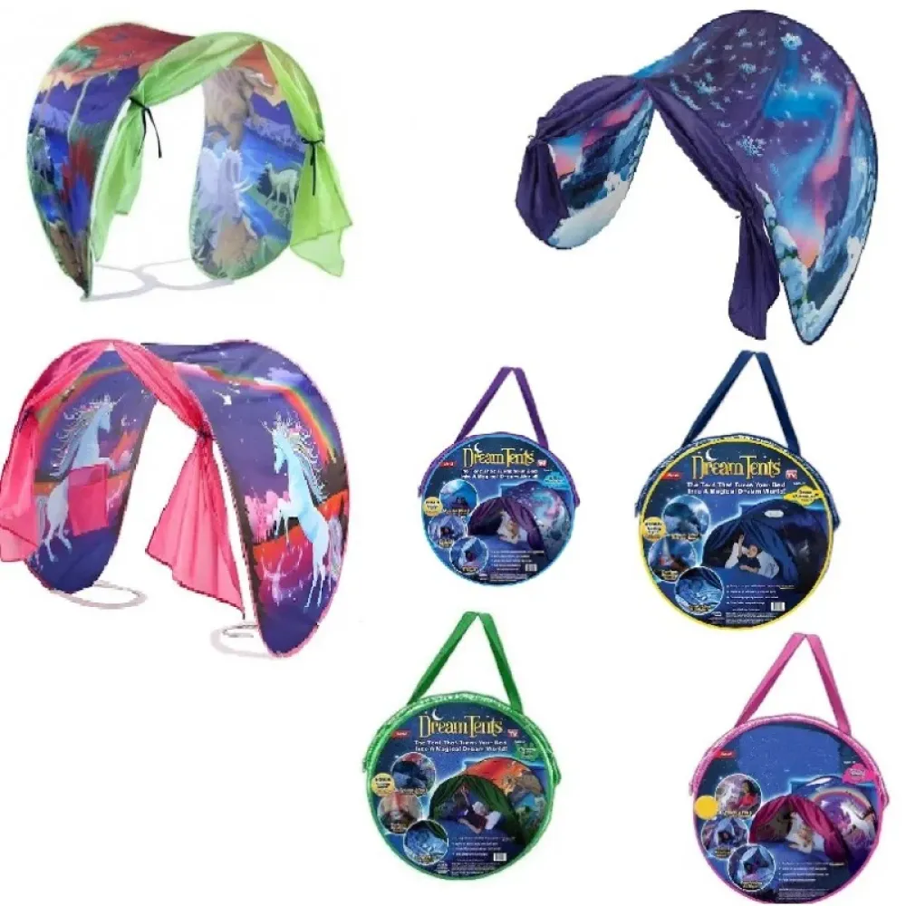 Погрузите своего малыша в мир волшебства и фантазий с нашей детской палаткой Dream Tents! Этот уникальный тент создан специально для создания магической атмосферы в игровом пространстве вашего ребенка. С его ярким и привлекательным дизайном, вдохновленным космосом, зимним небом, единорогами или эрой динозавров, ваш малыш будет в восторге от каждой игровой сессии.