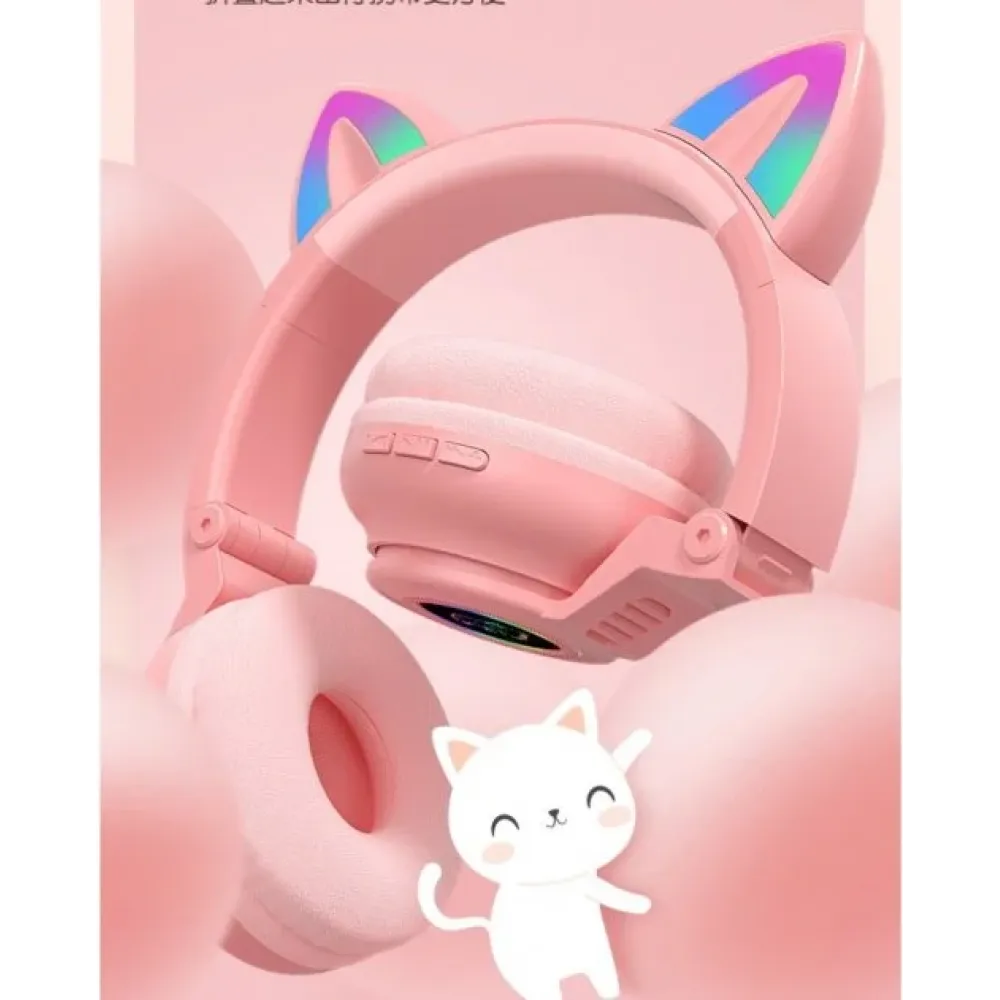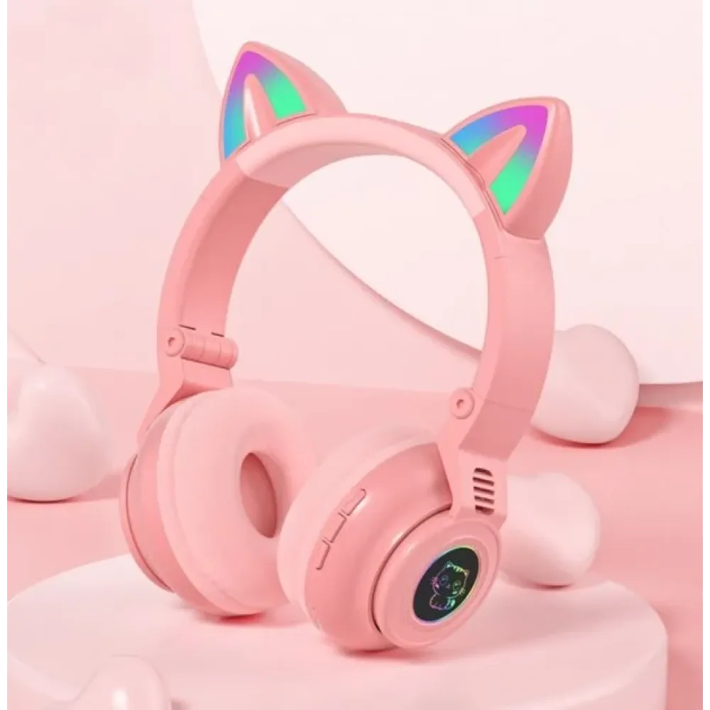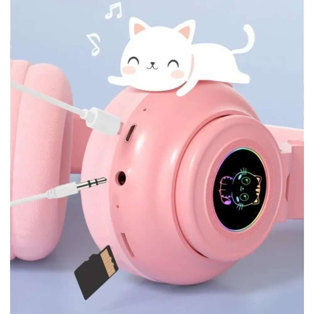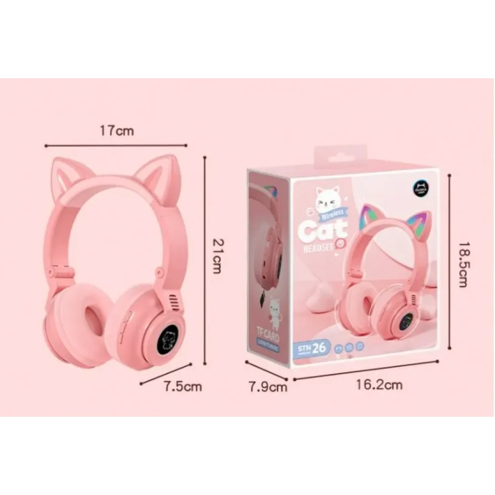 Детские беспроводные наушники STN-26 с кошачьими ушками c подсветкой и микрофоном Bluetooth c MicroSD
