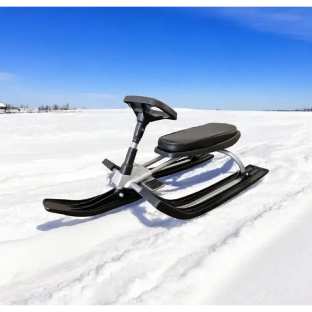 Детские санки  - снегокат Snow Racer с рулем, передним амортизатором и ножным тормозом · Сани управляемые до 80 кг