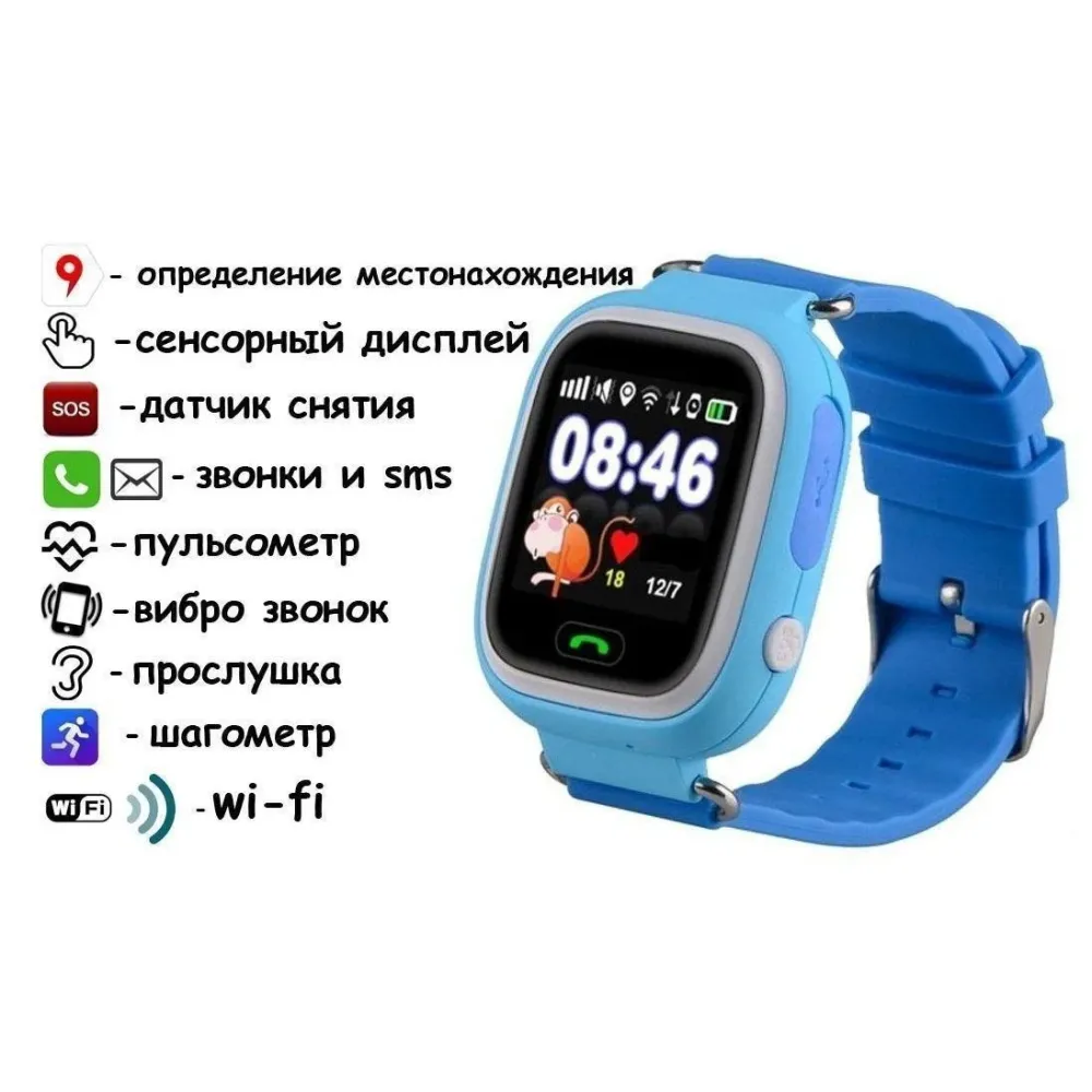 Телефон, часы, будильник, GPS трекер, Anti-Lost, шагомер, SOS вызов, удаленное слежение, Geo-зоны, звонки на заданные номера, мониторинг передвижения через приложения для Android, iOS, прослушивание звука в окружении до 5 метров.
