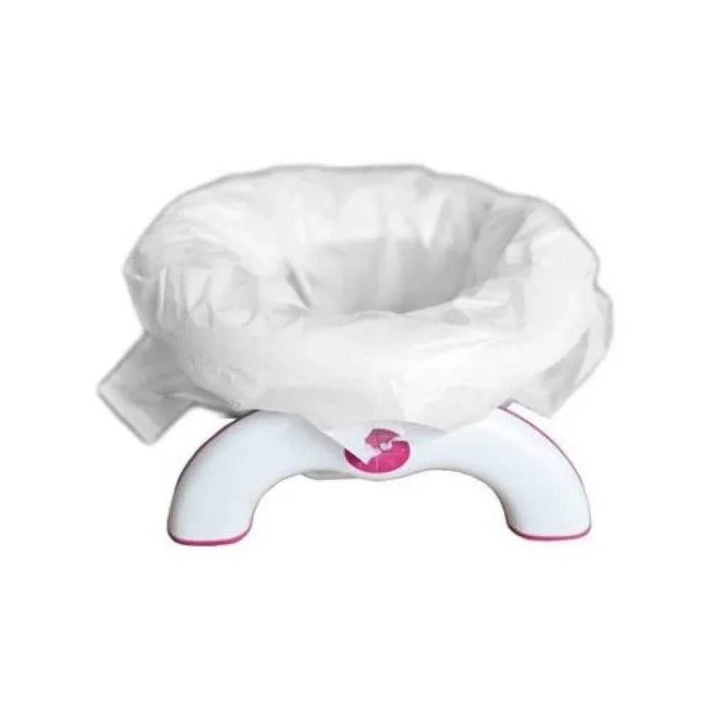 После использования пакет нужно просто сложить и выбросить. Кроме того, горшочек легко трансформируется в удобное для ребенка сидение для унитаза с нескользящими ножками.