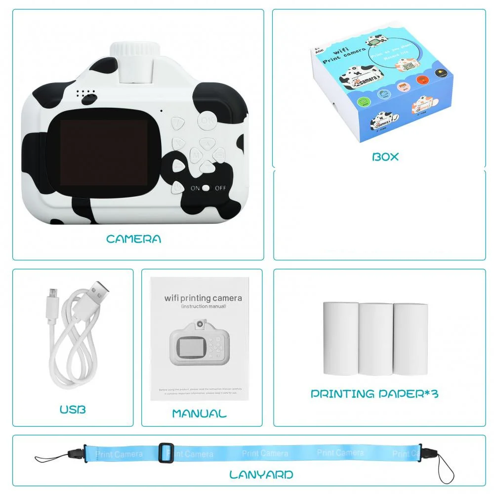 Фотокамера детская с мгновенной печатью снимков Wi Fi 8019 — это цифровая камера с симпатичным детским дизайном, запишет все чудесные моменты и принесет вашему ребенку красочные воспоминания о путешествиях и запоминающихся событиях.