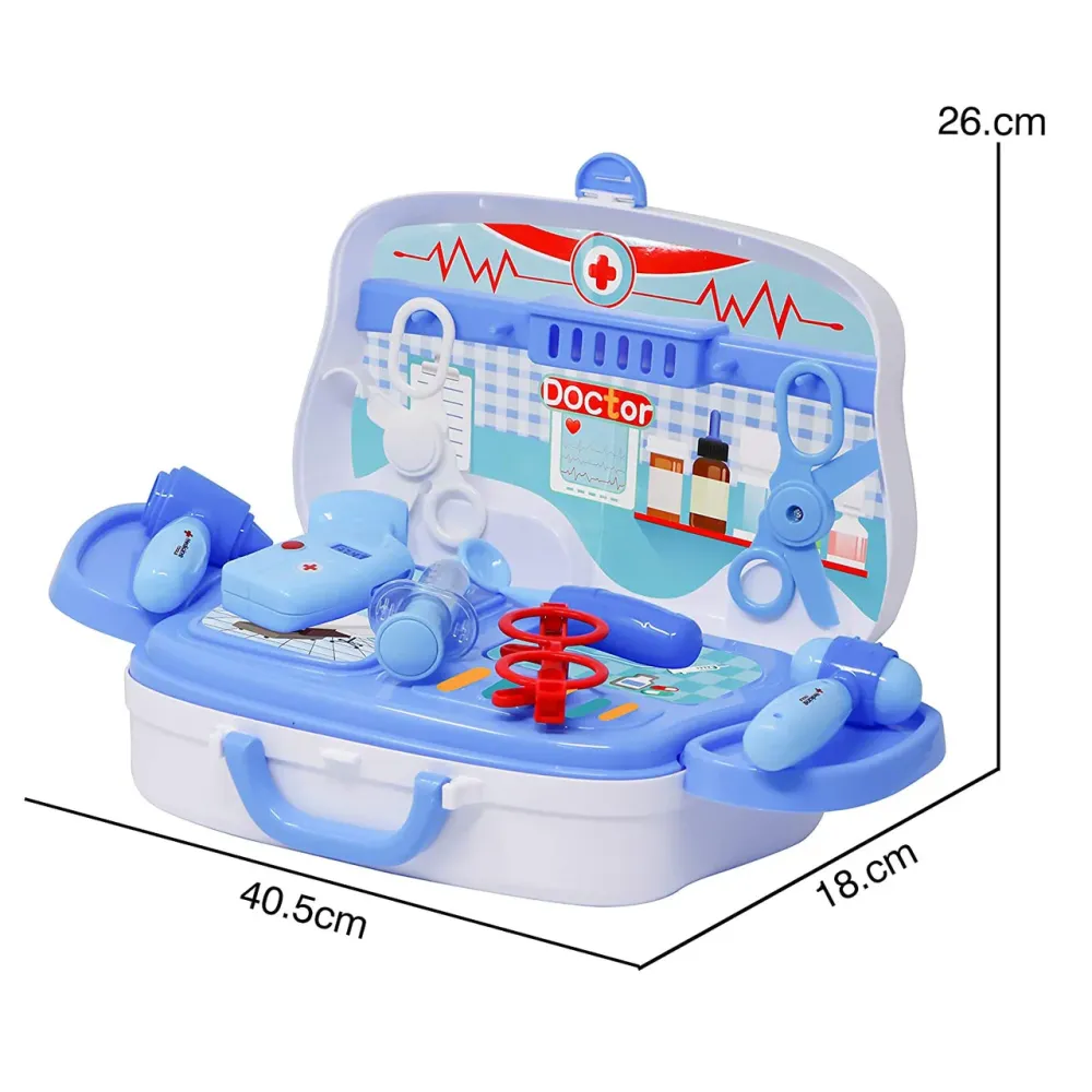 Набор доктора "Happy Doctor" - это большой познавательный комплект для малышей. Выполнен из качественного пластика, упакован в красивый кейс на колесах, который раскладывается в удобную рабочую панель для врача. Состоит из шприца, очков, офтальмологические приборы, два вида ножниц, молоточек, лопатка для осмотра горла и прочих аксессуаров