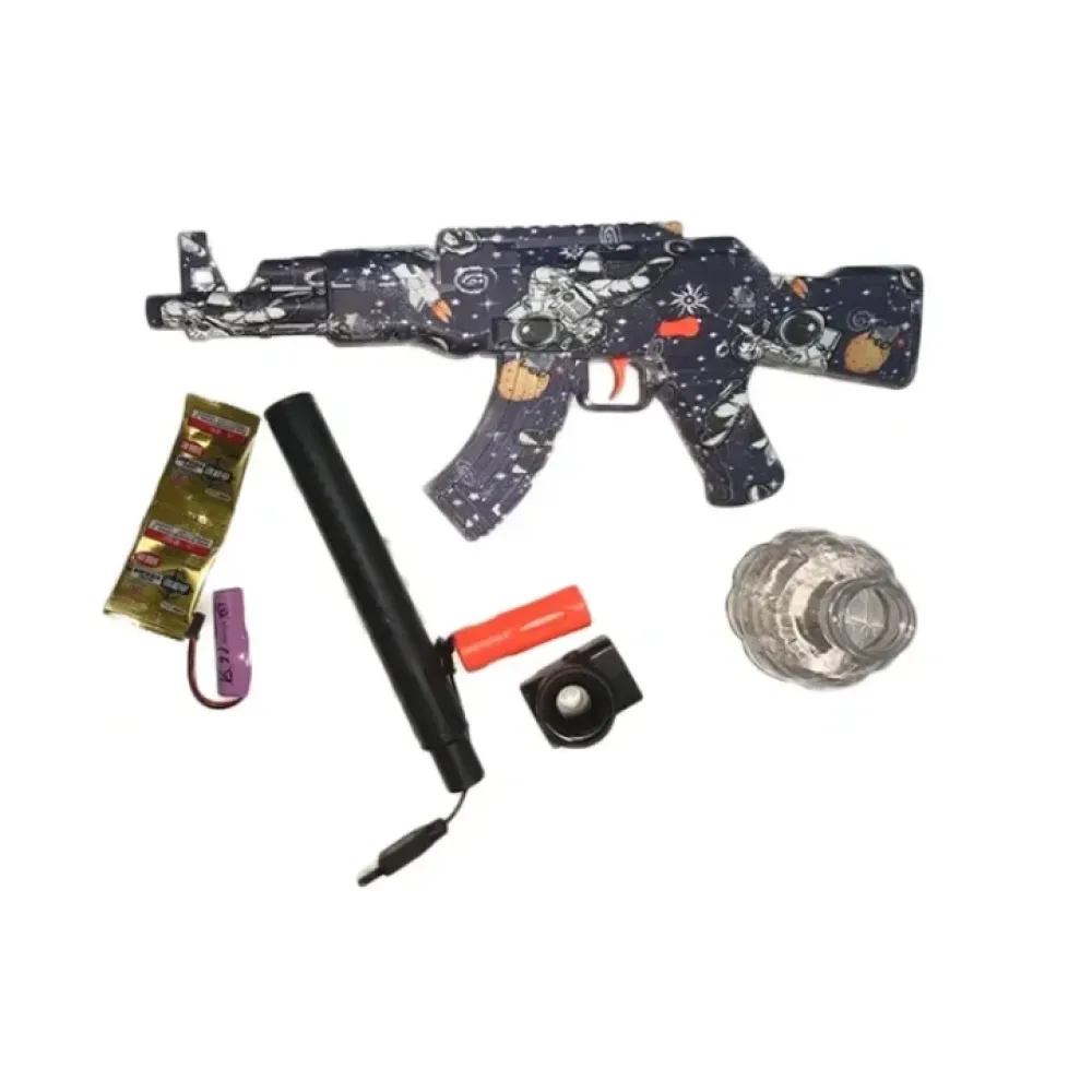 Модель отличается отличной детализацией и цветным оформлением, что делает её не только функциональной, но и привлекательной. Автомат стреляет орбизами, а в комплекте идет аккумуляторная батарея на 7.4V, которая обеспечивает продолжительную игру без перерывов. Благодаря разборной конструкции и возможности снять глушитель, автомат легко настраивается и обслуживается. Также в комплект входят очки для защиты глаз во время активных игр.