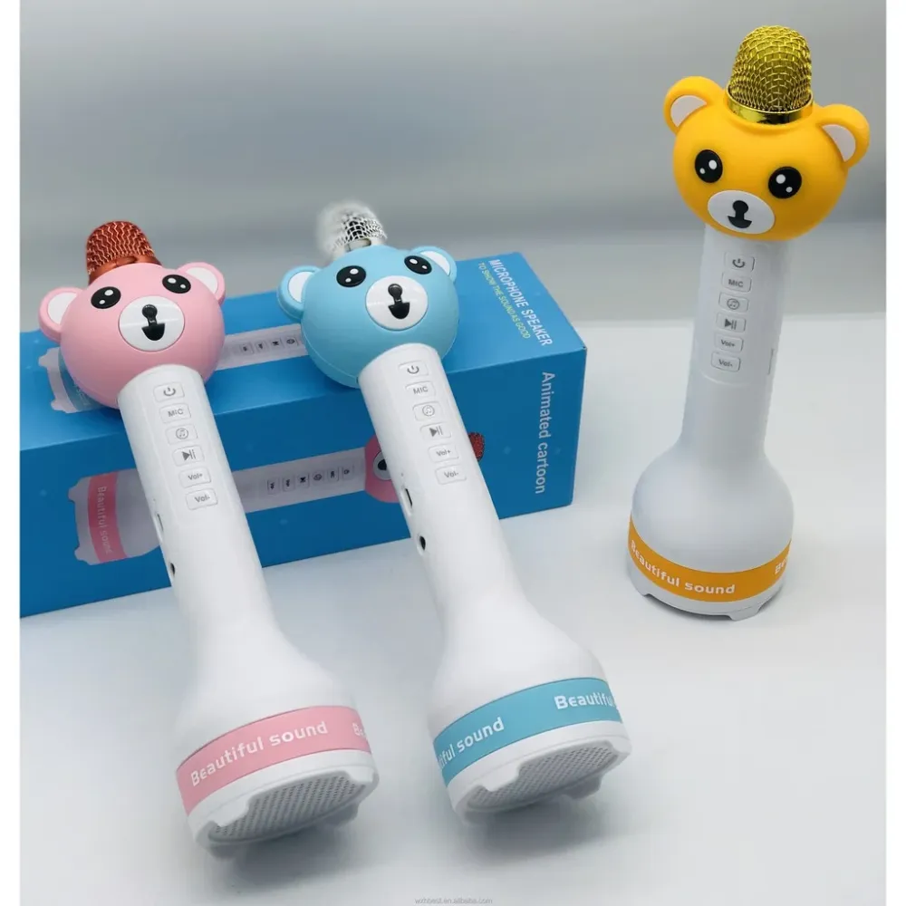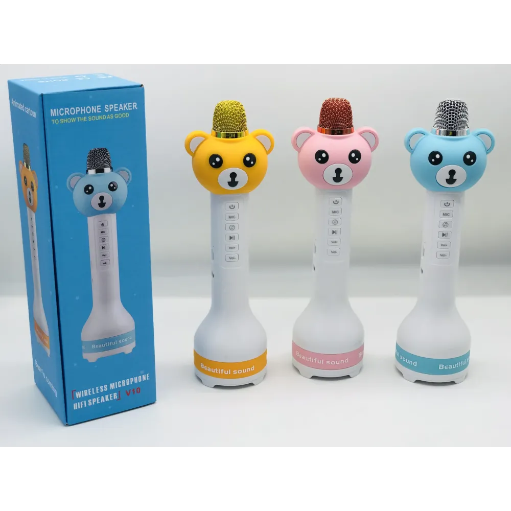 Детский караоке микрофон и Bluetooth-колонка 2 в 1 Animated Cartoon V10 подходит для IOS и андроид смартфонов, для планшетов, Bluetooth и так далее. Может быть использован в качестве Bluetooth динамиков. Есть функция записи на карту памяти microSD.