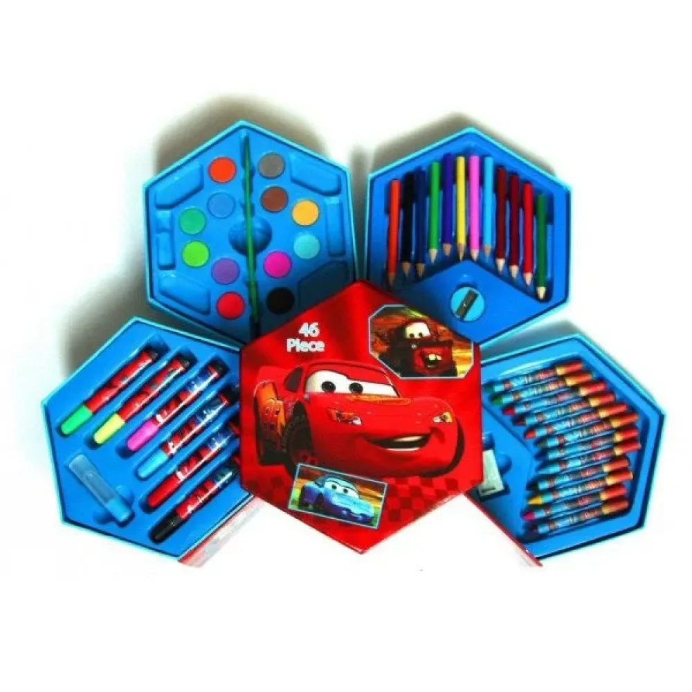 Детский художественный набор для рисования и творчества "Тачки", 46 предметов в боксе-шестиграннике