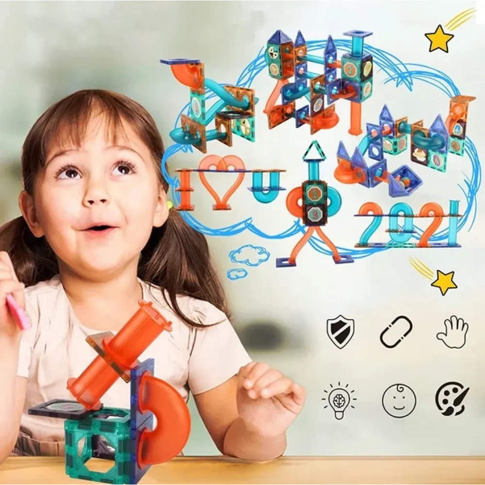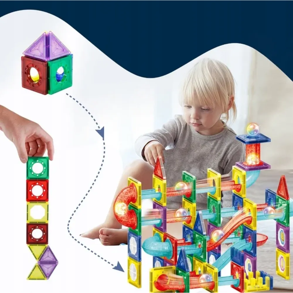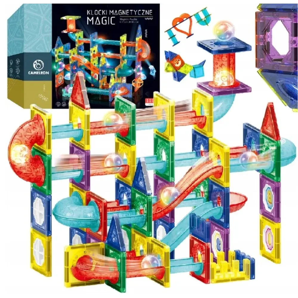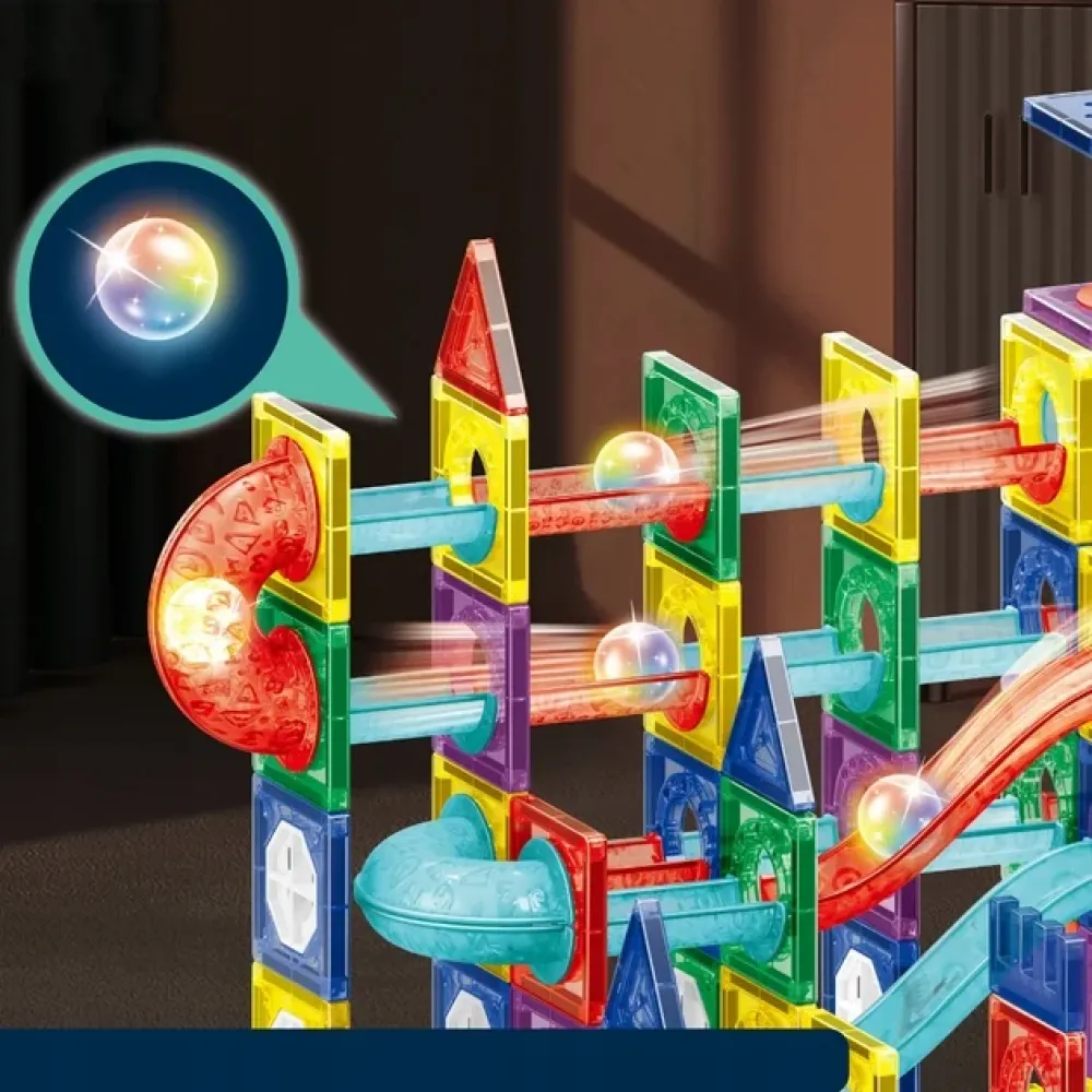 Особенность конструктора — зрелищные световые эффекты: детали переливаются всеми цветами радуги, а светодиодный шарик делает игру по-настоящему волшебной. Конструктор представляет собой инновационный магнитный лабиринт со светодиодным шариком, открывая детям новые возможности для творчества и экспериментов.