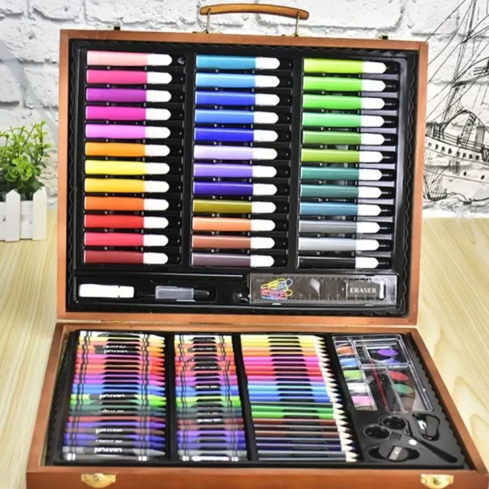 Детский набор для рисования и творчества Kartal на 150 предметов в деревянном чемодане ∙ Чемоданчик юного художника – это находка для творца! В наборе находятся сразу все предметы, необходимые для создания рисунков, аппликаций и других шедевров. Дети будут особенно рады такому подарку – все яркие предметы аккуратно размещены в удобном чемоданчике. Огромный выбор канцелярских товаров поможет быстрее развиваться ребенку.