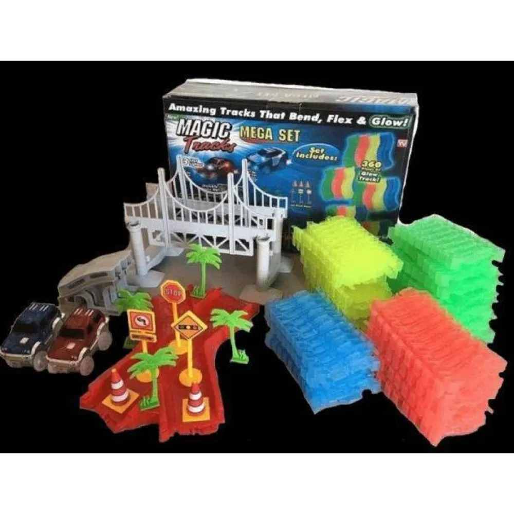 Magic Tracks MEGA SET 360 деталей - это гоночная трасса, которая гнется в любом направлении, а главное - светится в темноте! Трасса легко трансформируется на 360 градусов. Можно менять маршрут прямо во время заезда машинок! Каждый новый заезд - новая конфигурация трассы - такая, какую только захотите! Самые эффектные заезды происходят в темноте, ведь трасса и машинки Magic Tracks светятся красивым неоновым светом!