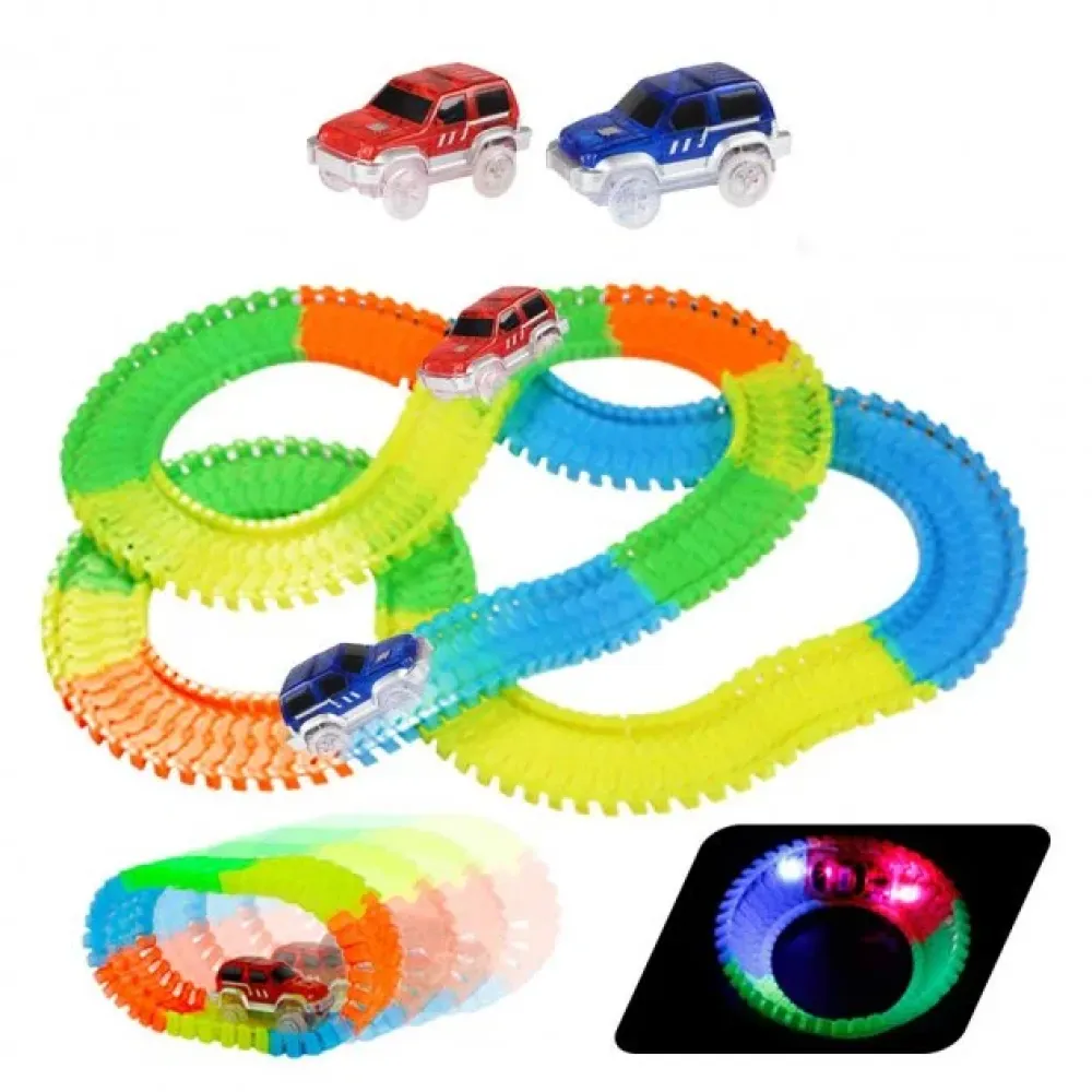 Запускаете по Magic Tracks светящиеся автомобили, выключаете свет и радуете детей волшебством светящейся трассы.