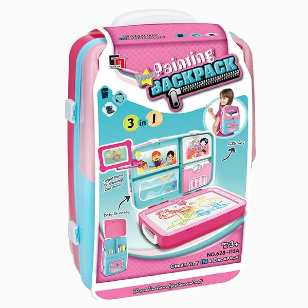 Детский обучающий набор для рисования Backpack packing 3 in 1 ∙ Рюкзак для творчества с магнитной доской ∙ Синий / Розовый
