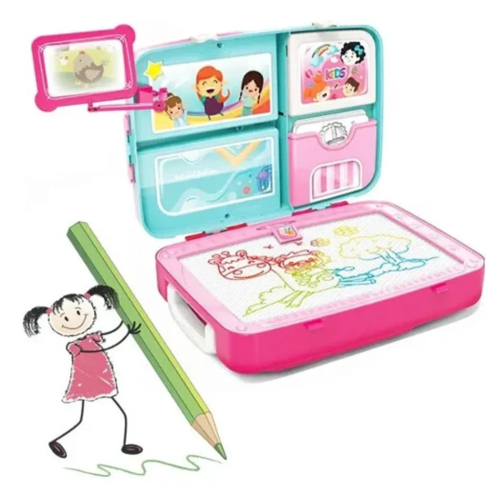 Этот фантастический творчества! Игровой набор состоит из красивой двусторонней доски с магнитной стороной, на которой вы можете рисовать и стирать фантастическим волшебным маркером, и графитовой стороны, где вы можете рисовать множеством цветных мелков! Кроме того, эта красивая классная доска оснащена небольшим опорным кронштейном, куда вы можете вставить одно из 4 включенных изображений и весело копировать их, как настоящий художник!
