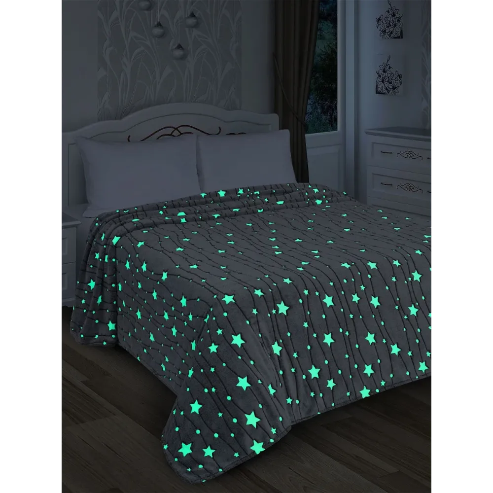 Детский плед светящийся в темноте ∙ Люменисцентный неоновый плед – одеяло со звездами ∙ Покрывало «день-ночь»