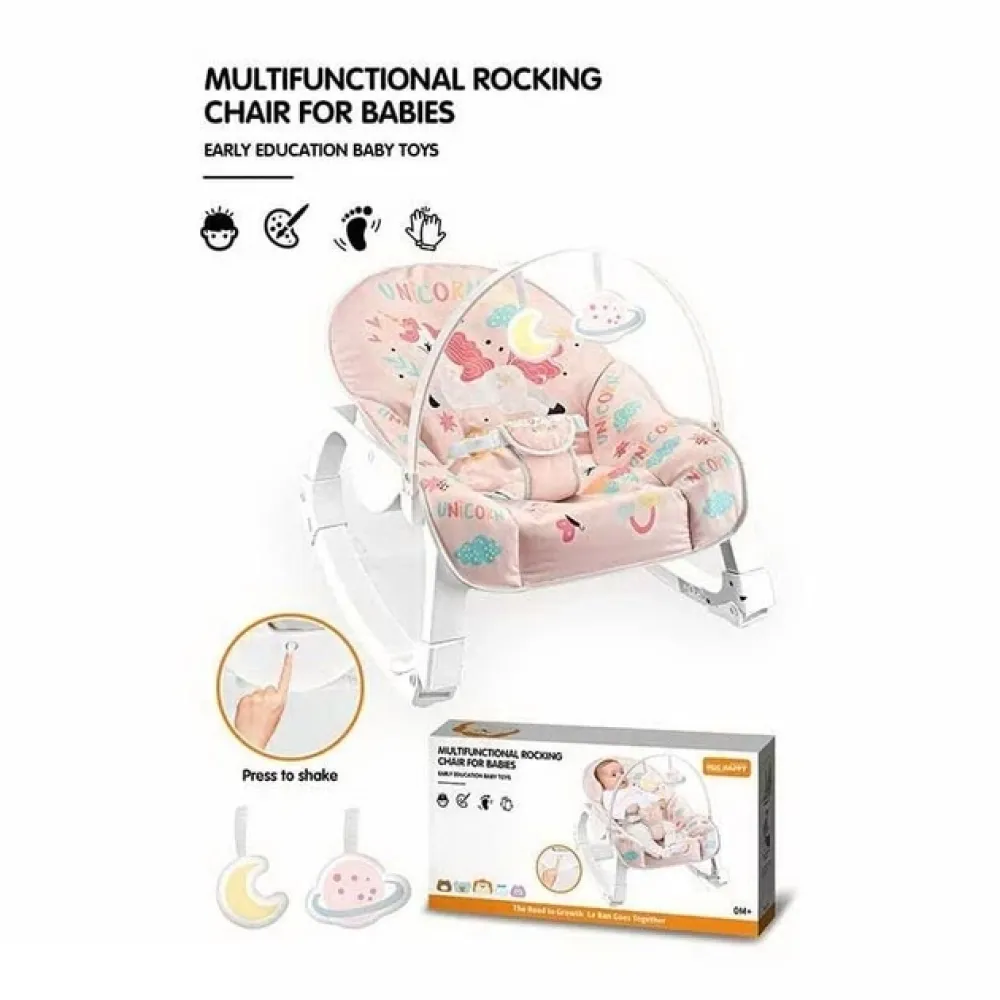 Детский шезлонг Happy Baby YK7007A разноцветный X-640 • Шезлонг-качели для новорожденных с вибрацией, регулируемой спинкой, дугой с игрушками и ремнями безопасности