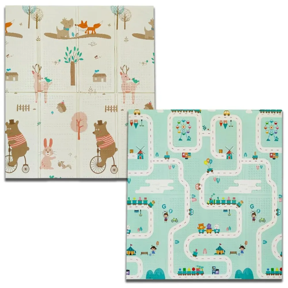 Детский складной развивающий термо коврик двусторонний "Дорога ∙ Мишка на велосипеде" 200 х 180 х 1 см