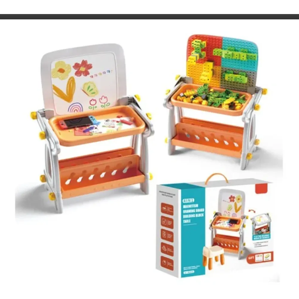 Детский стол B8020 магнитная доска для рисования конструктор из блоков • Развивающий набор стол мольберт магнитная доска и конструктор 4 в 1