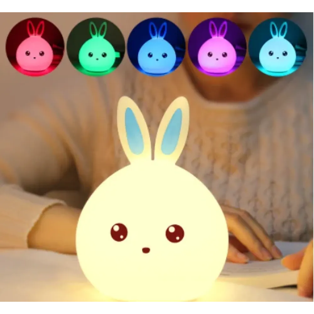Детский светильник – ночник Зайчик LED Rabbit Soft Touch силиконовый со встроенным аккумулятором ∙ 7 режимов свечения