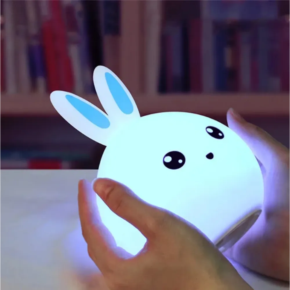 Силиконовый Кролик-ночник - это отличный вариант освещения и декора для спальни, кабинета и особенно детской комнаты. Он создаёт в доме атмосферу уюта, тепла и комфорта. Светильник подойдёт даже самым маленьким деткам так как не слепит глазки, а светить приятным приглушённым светом. Милый ночник поможет не бояться темноты, при внезапном ночном пробуждении. Это также отличный подарок для детей или ваших друзей на Новогодние праздники или День рождения. Этот ночник Зайчик станет настоящим чудом для вашего ребенка