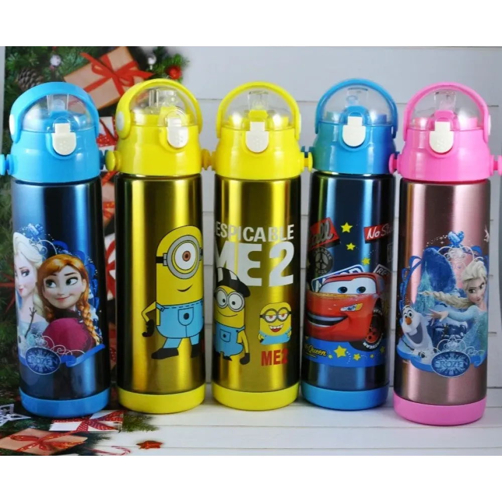 Оригинальный яркий термос для ребенка предназначен для хранения горячих/холодных напитков. Внешний слой — ударопрочные стенки из нержавеющей стали, которые предотвращают от внешних повреждений и вмятин. Внутренний слой — нержавеющая сталь. Можно использовать как полноценную термо-кружку.