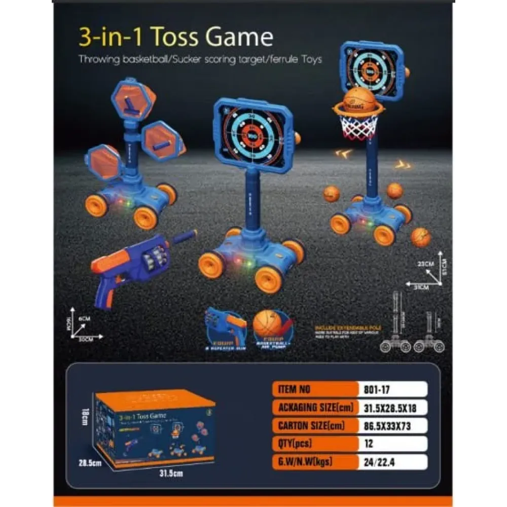 Детский тир 3 в 1 801-17 баскетбол + пистолет + мобильная мишень • Баскетбольный комплект для детей 3 в 1