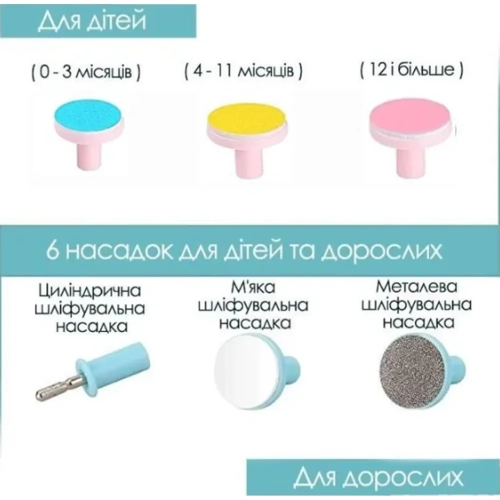 Детский триммер для ногтей 6 в 1 Маникюрный набор для детей и взрослых с насадками для шлифовки и полировки