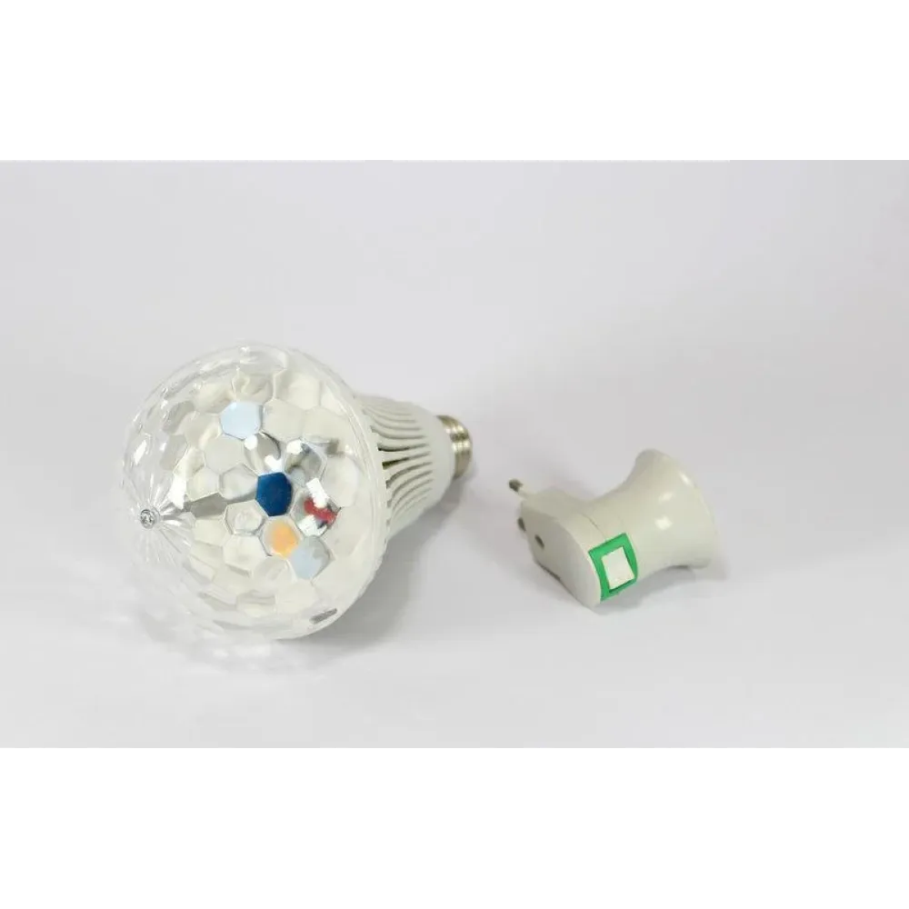 Диско-лампа является оригинальным устройством, в котором содержится много LED диодов разных цветов. Благодаря чему есть возможность получения в домашних условиях эффекта реальной цветомузыки. Такая лампочка может быть просто вкручена в простой цоколь. Лампой освещаются вращающиеся шары благодаря моторчику, который органично встроен в сам прибор. Для рассеивания света на значительную площадь помещения, устройство оснащено специальной колбой. Такая диско-лампа способна на украшение любого интерьера, и будет поддерживать веселье всех присутствующих.