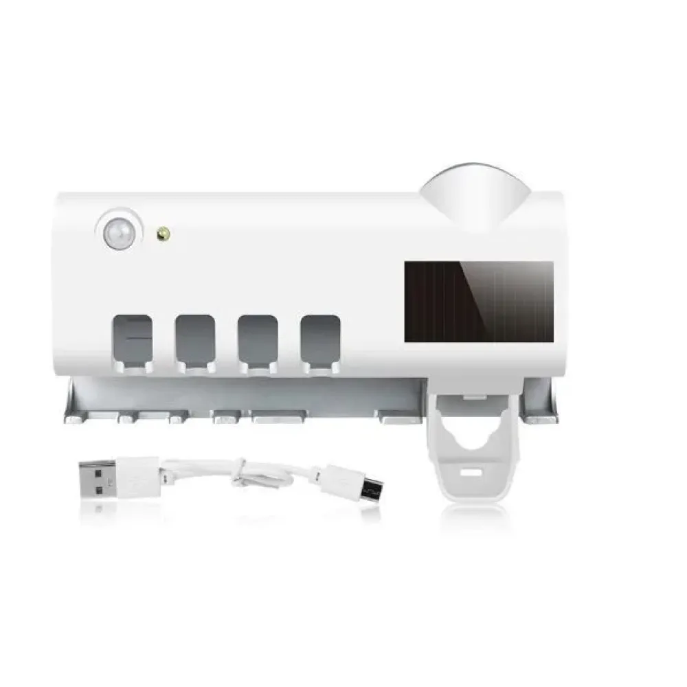 Назначение: Устройство 3в1: держатель для зубных щеток + ультрафиолетовая дезинфекция + механический дозатор зубной пасты