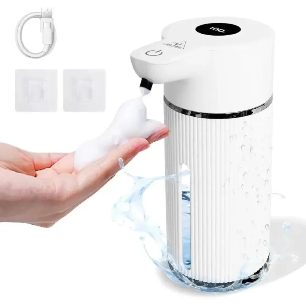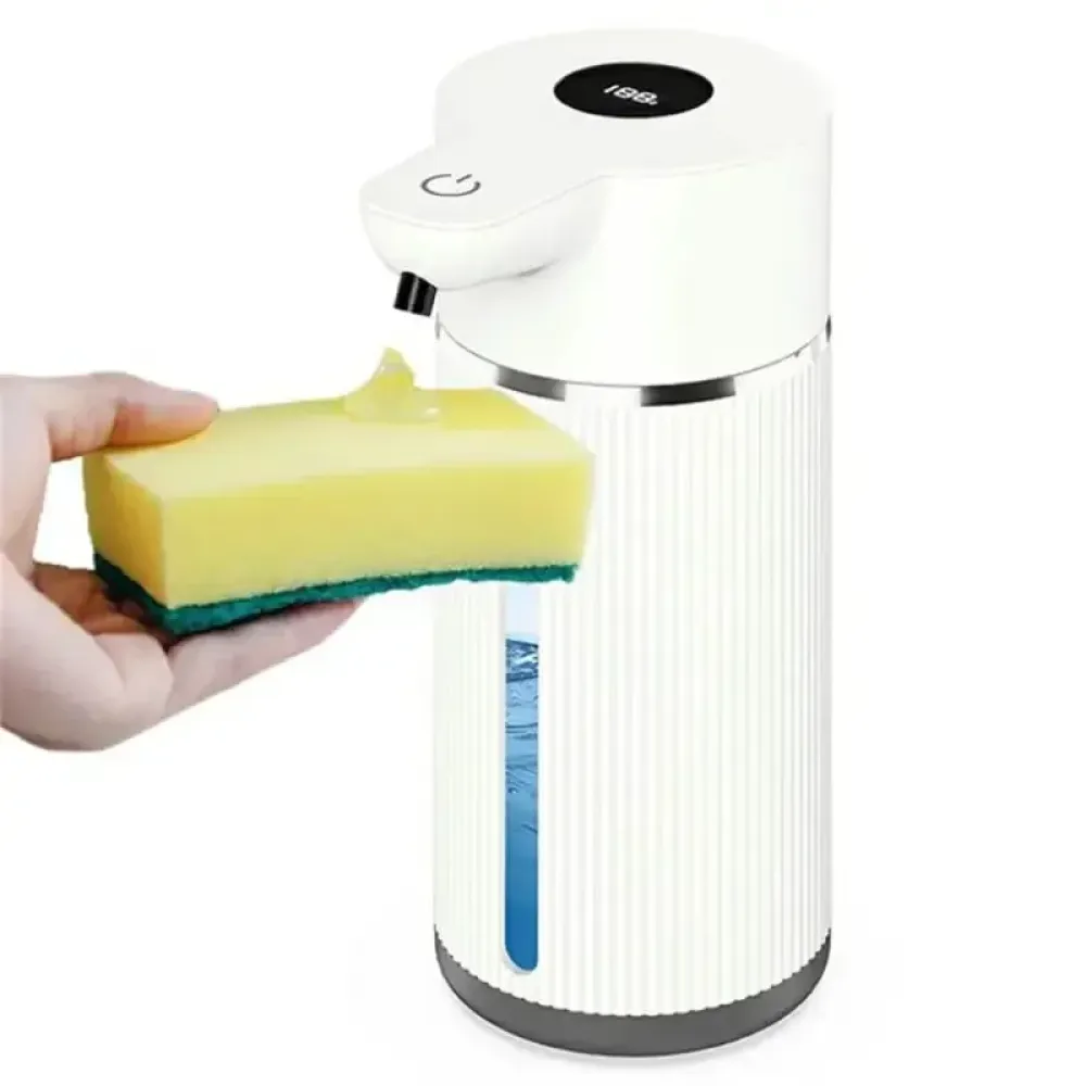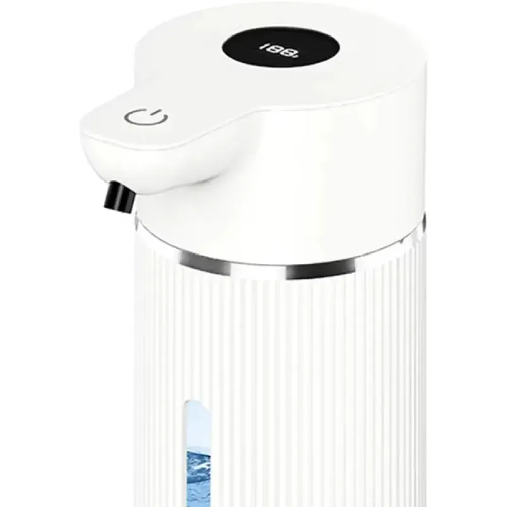 Устройство оснащено LED-дисплеем с 4 уровнями подачи мыла, емкостью 420 мл с прозрачным окошком для контроля жидкости и встроенным аккумулятором 1200 мАч для длительной автономной работы. Корпус из ABS-пластика защищён по стандарту IPX5, что делает дозатор безопасным в условиях повышенной влажности. Возможна настенная установка или размещение на столе.