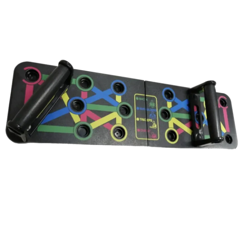 Доска платформа является полноценным тренажёром, который позволит вам тренироваться вне тренажёрного зала дома или в путешествии. Благодаря разным вариантам установки упоров на тренажере, можно проработать большую часть мышц верхнего плечевого пояса. На доске имеется цветная разметка, которая соответствует определенной группе мышц. В процессе тренировки вы сможете изменить положение опор и тем самым дать нагрузку разным мышцам.