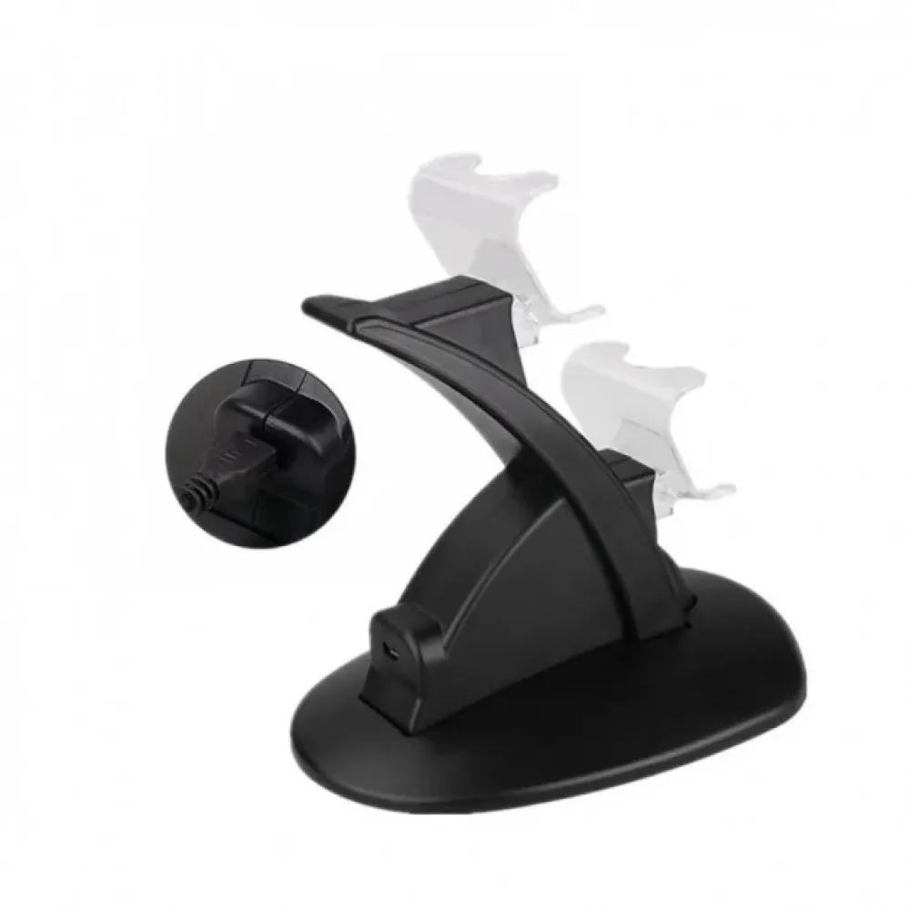 Зарядная станция (или док - станция) выполнена в виде подставки, в которую можно установить одновременно два геймпада от приставки. Присутствует индикатор зарядки.