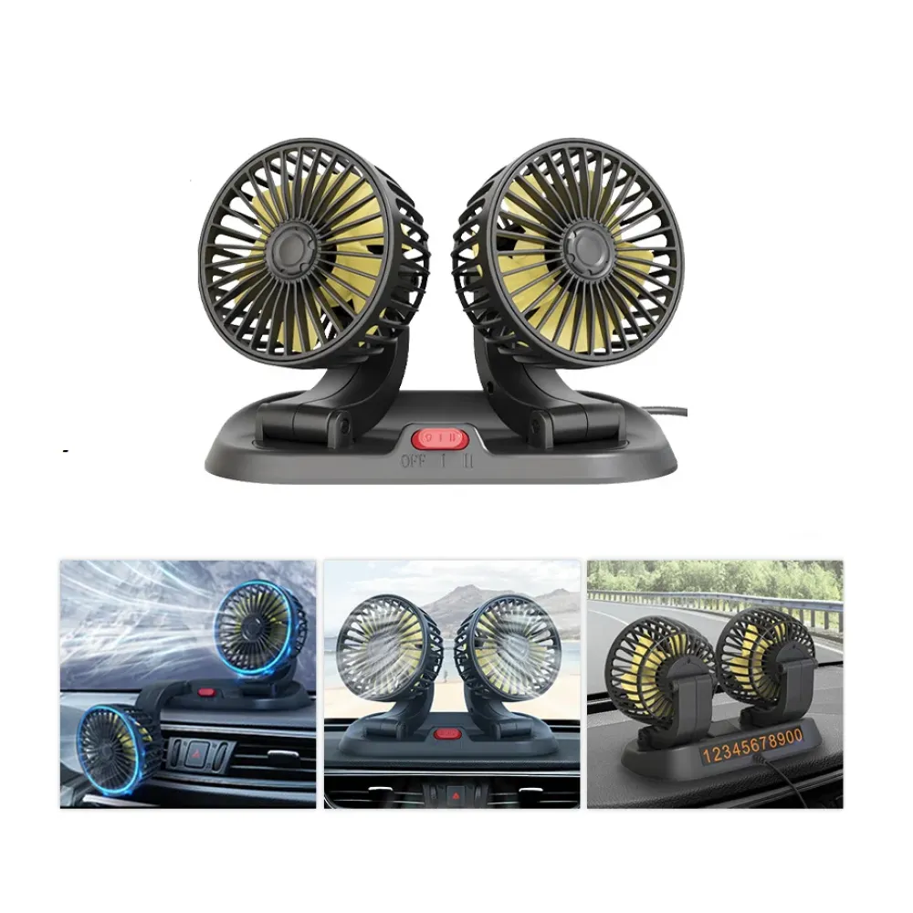 Двухголовый вентилятор для салона авто с регулятором скорости и поворотом 360° • Автомобильный вентилятор с двумя головками USB X666