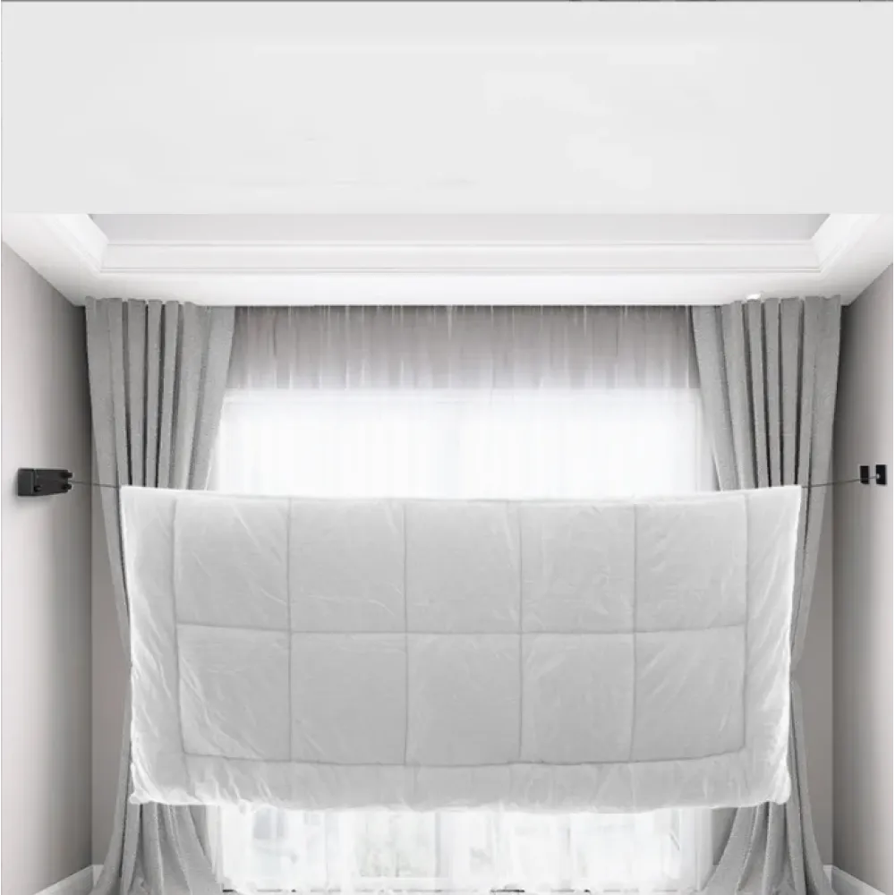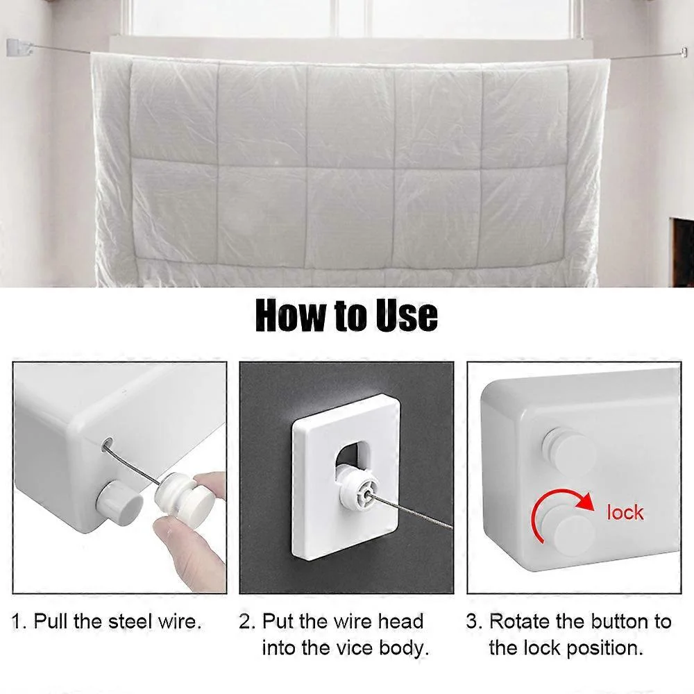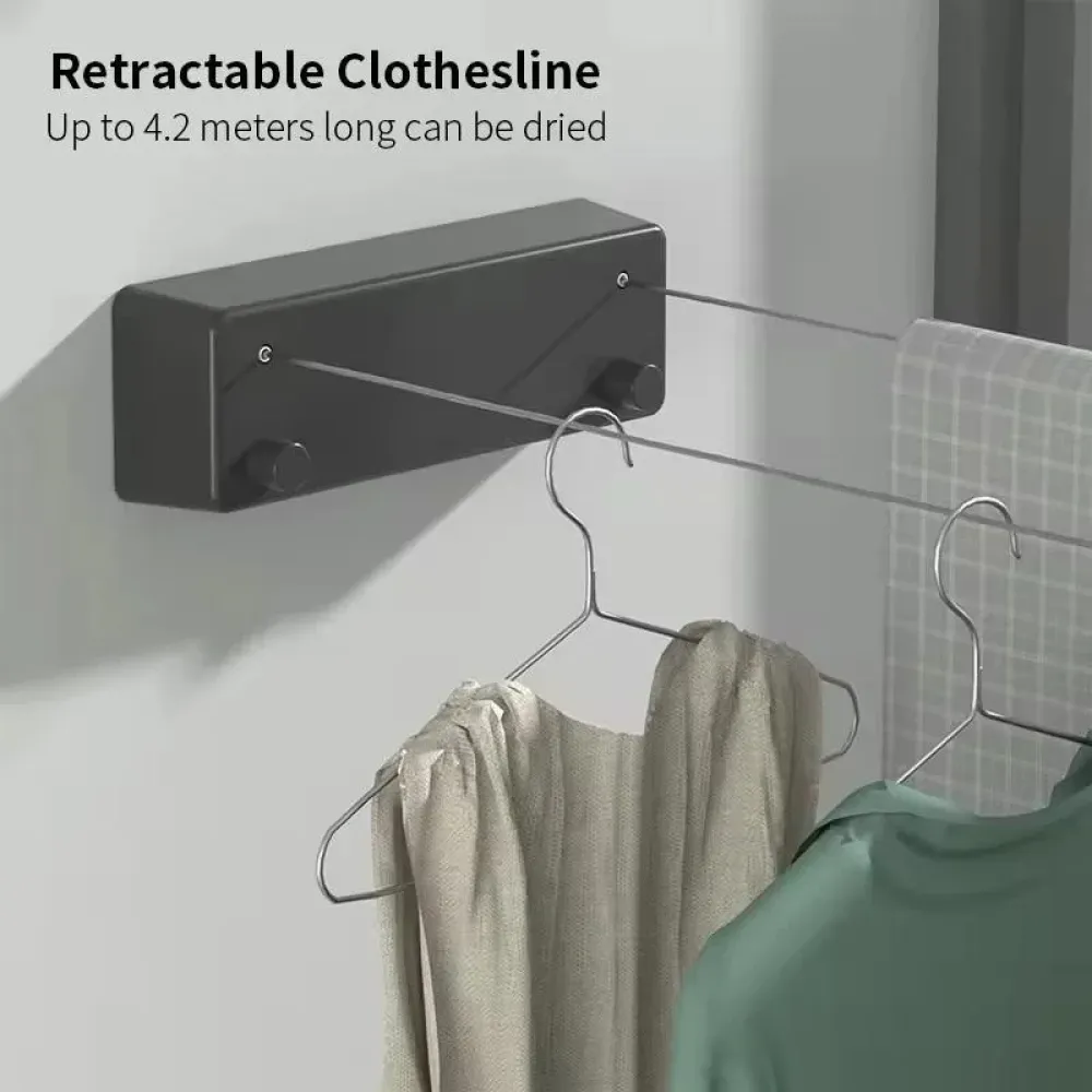 Конструкция оснащена полуавтоматическим механизмом с фиксатором: верёвка плавно выдвигается и автоматически сматывается после использования, экономя место и поддерживая порядок. Сушилка HP12 легко крепится на любую стену — в ванной, на балконе, в прачечной или даже на улице. Это надёжный помощник для квартиры, дома и путешествий.