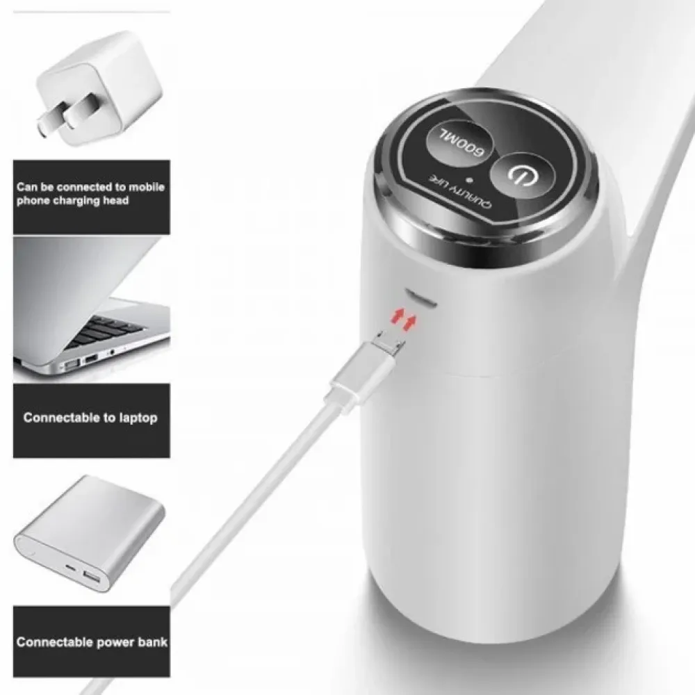 Помпа оснащена встроенным аккумулятором емкостью 1200 мАч, который позволяет перекачивать более 120 литров воды на одном заряде, эквивалентно 6 бутылям по 19 литров. Полная зарядка занимает всего 3-4 часа, а USB шнур для зарядки входит в комплект. Световой индикатор на верхней панели уведомит о низком уровне заряда, загораясь красным цветом. Устройство совместимо с бутылями объемом до 19 литров, благодаря гибкому силиконовому шлангу. Корпус выполнен из пищевого пластика, а внешний кран из нержавеющей стали, что обеспечивает долговечность и безопасность использования.