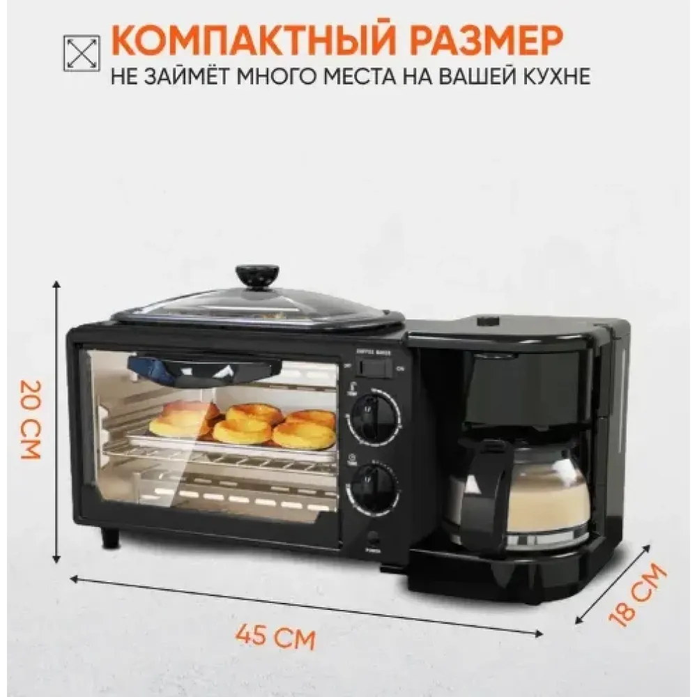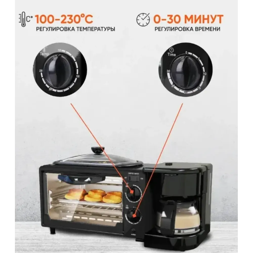 Электрическая духовка BITEK BT-5308 Духовой шкаф с встроенной кофемашиной кофеваркой и сковородой гриль 3 в 1