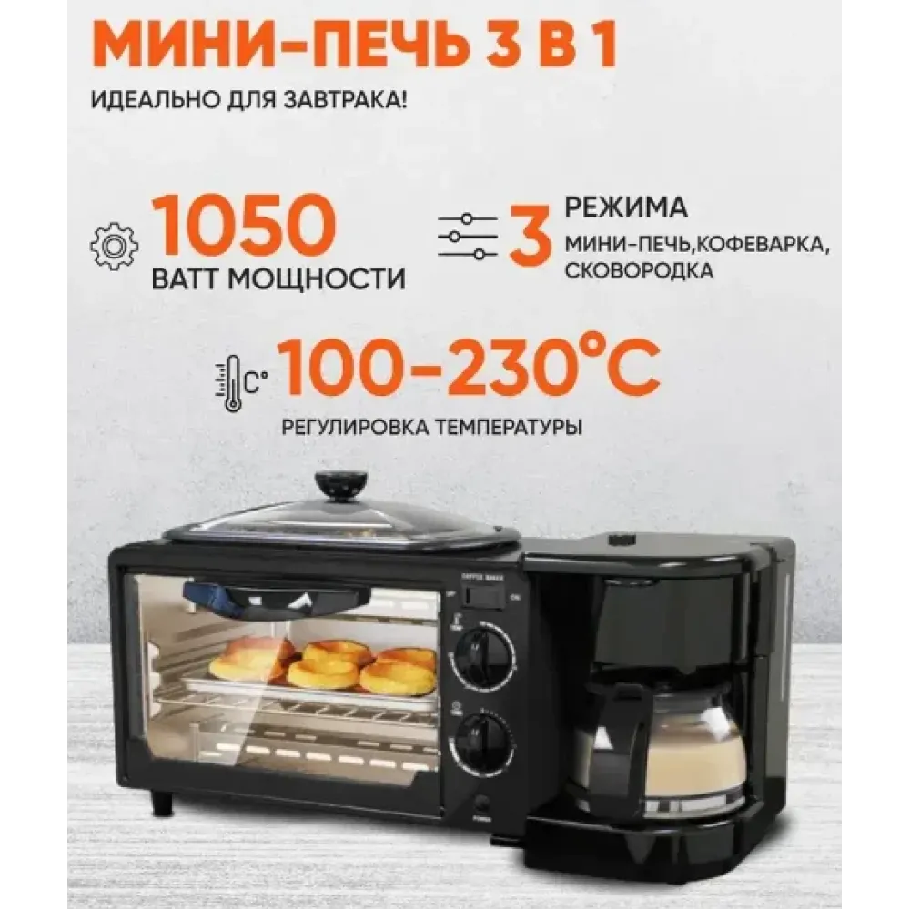 Электрическая домашняя печь – духовка RAF R.5308B 3 в 1 с кофемашиной и гриль-сковородой