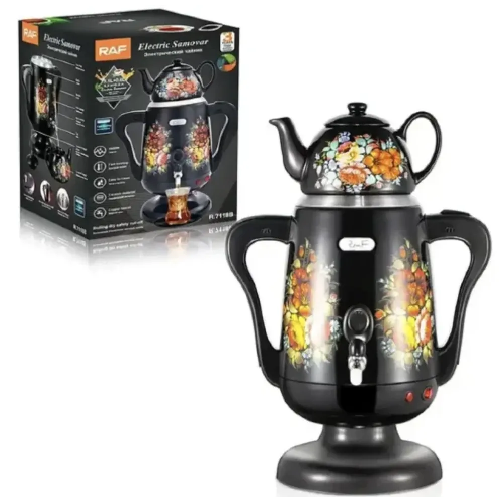 Электрический самовар RAF R-7118 – это сочетание классического дизайна и современных технологий, которое делает процесс приготовления чая удобным и быстрым. Вместительный резервуар на 3,5 литра позволяет вскипятить воду для всей семьи или компании друзей, а фарфоровый заварник на 0,6 литра идеально подходит для заваривания ароматного чая.