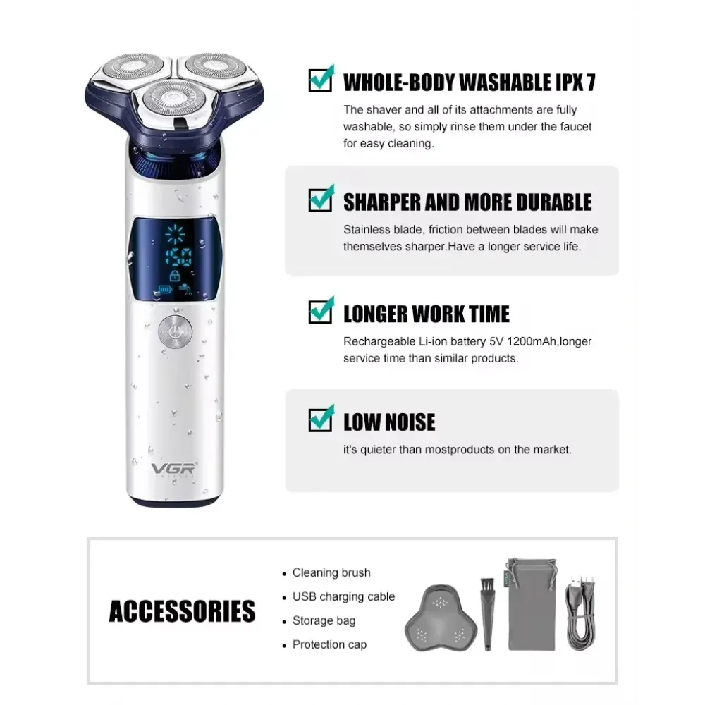 Электробритва роторная с плавающими головками VGR V-328 · Портативная электробритва аккумуляторная