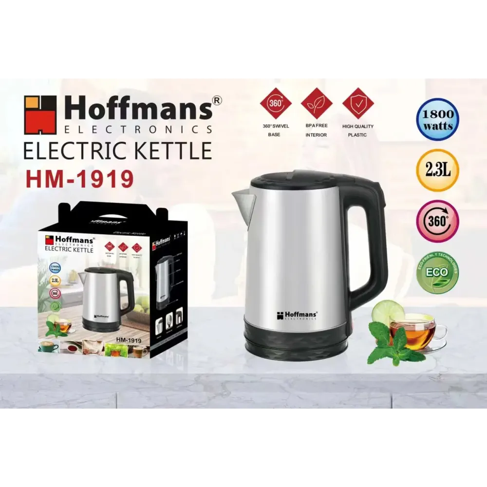 Электрочайник Hoffmans HM-1919 — современный кухонный прибор для быстрого и удобного кипячения воды. Его объём 2,3 литра подходит для семьи или небольшой компании гостей, а мощность 1800 Вт обеспечивает быстрое закипание и экономию времени.
